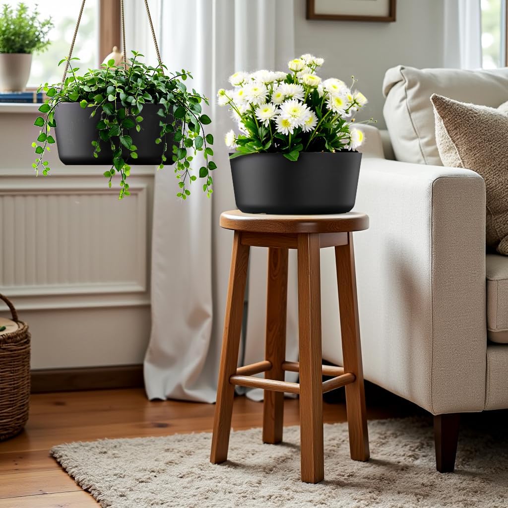10.7 Inch Hanging Planter for Outdoor Indoor Plants,2 Pack Hanging Flower Pots with Drain Holes for Garden Home Decor Use (Black)