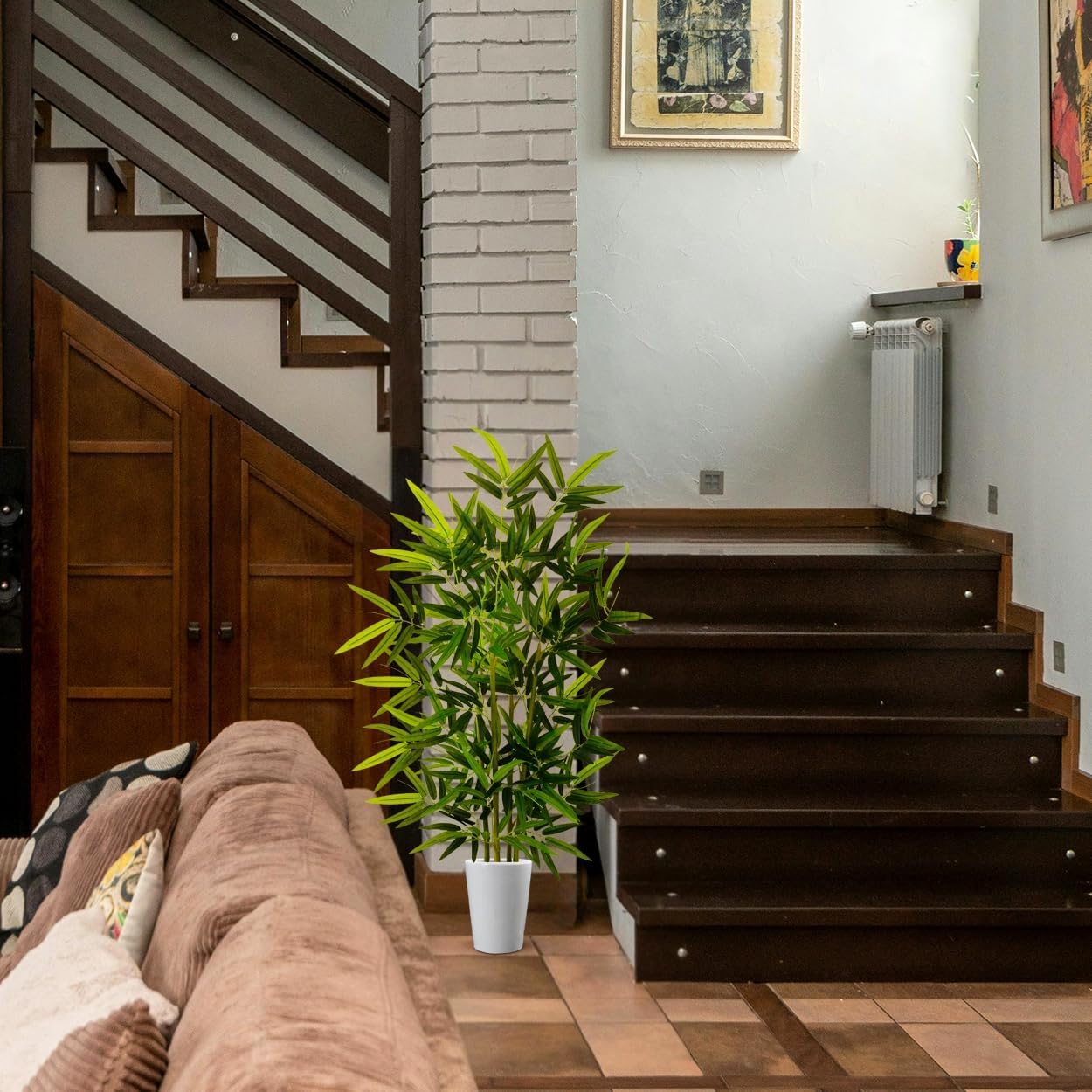 - 4ft tall artificial bamboo tree with luxury white planter(5.9"Diameter,6.3"Height)