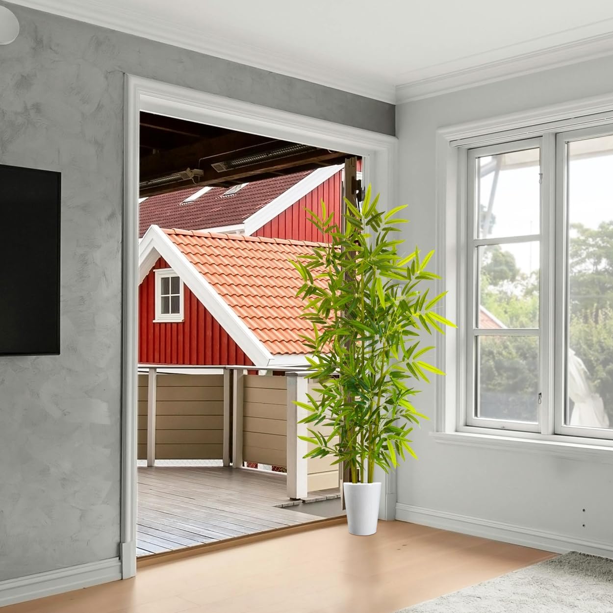 - 6ft tall artificial bamboo tree with luxury white planter(6.9"Diameter,6.9"Height)
