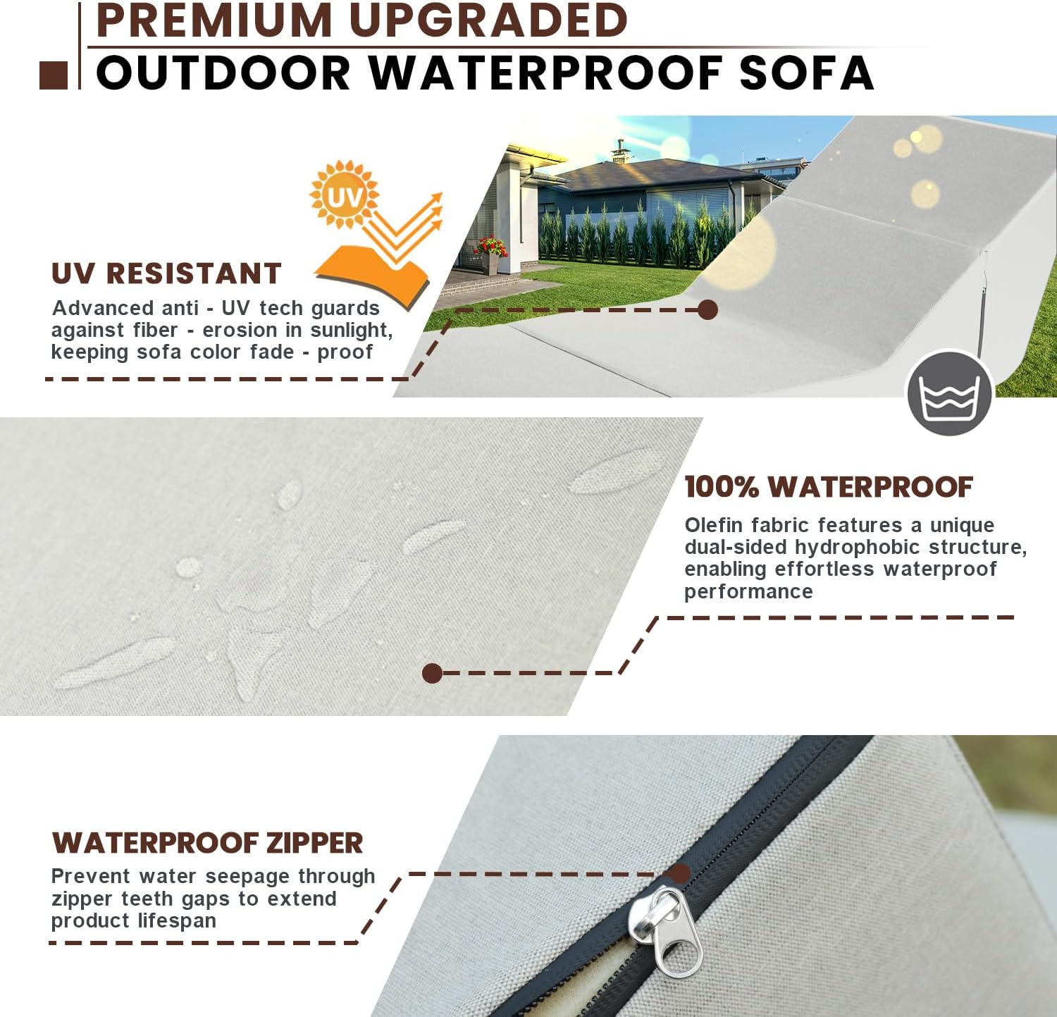 - Waterproof & Stain-Proof Olefin Fabric:Our lounge chair sofa outdoor, crafted from durable Olefin Fabric with a unique double - sided hydrophobic structure, excel in waterproofing and stain resistance. Stains wipe away effortlessly, restoring the chairs' fresh look. This patio furniture repel heavy rain without a trace, dry twice as fast as regular outdoor fabrics, and resist UV fading, ensuring lasting beauty for all your outdoor relaxation needs.