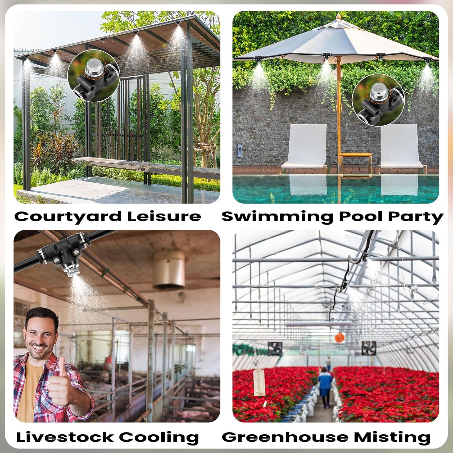 - 【Ideal for Multiple Uses】Designed for outdoor misting cooling system.Perfect for cooling off during hot summer days, whether you're lounging by the pool, enjoying time with your pets, or simply relaxing in your backyard