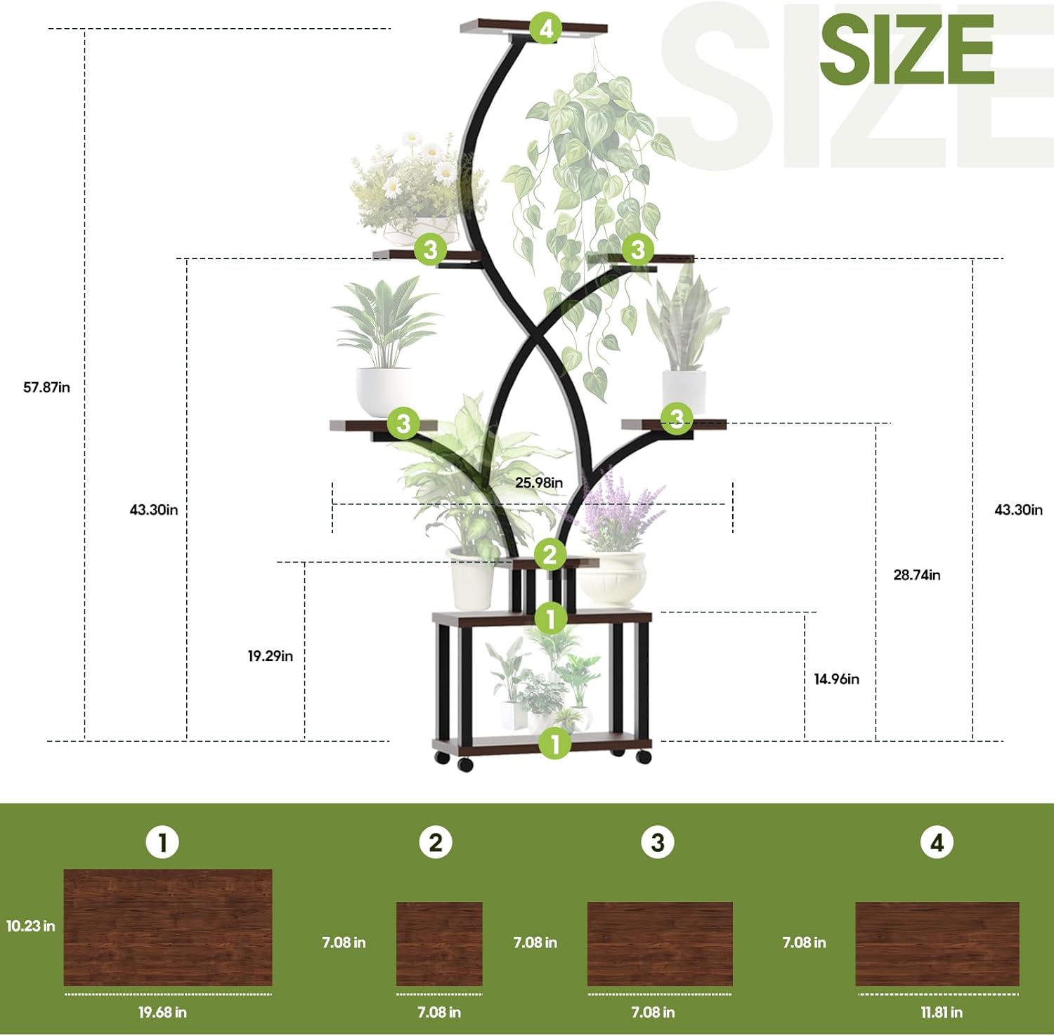 - 🌱Ample Storage Space: With 8 tiers, 8 pot stands, and a hanging hook, our 58" tall plant shelf offers plenty of space to display your plants. Save space and decorate the corners of your house with this unique S-shaped design.