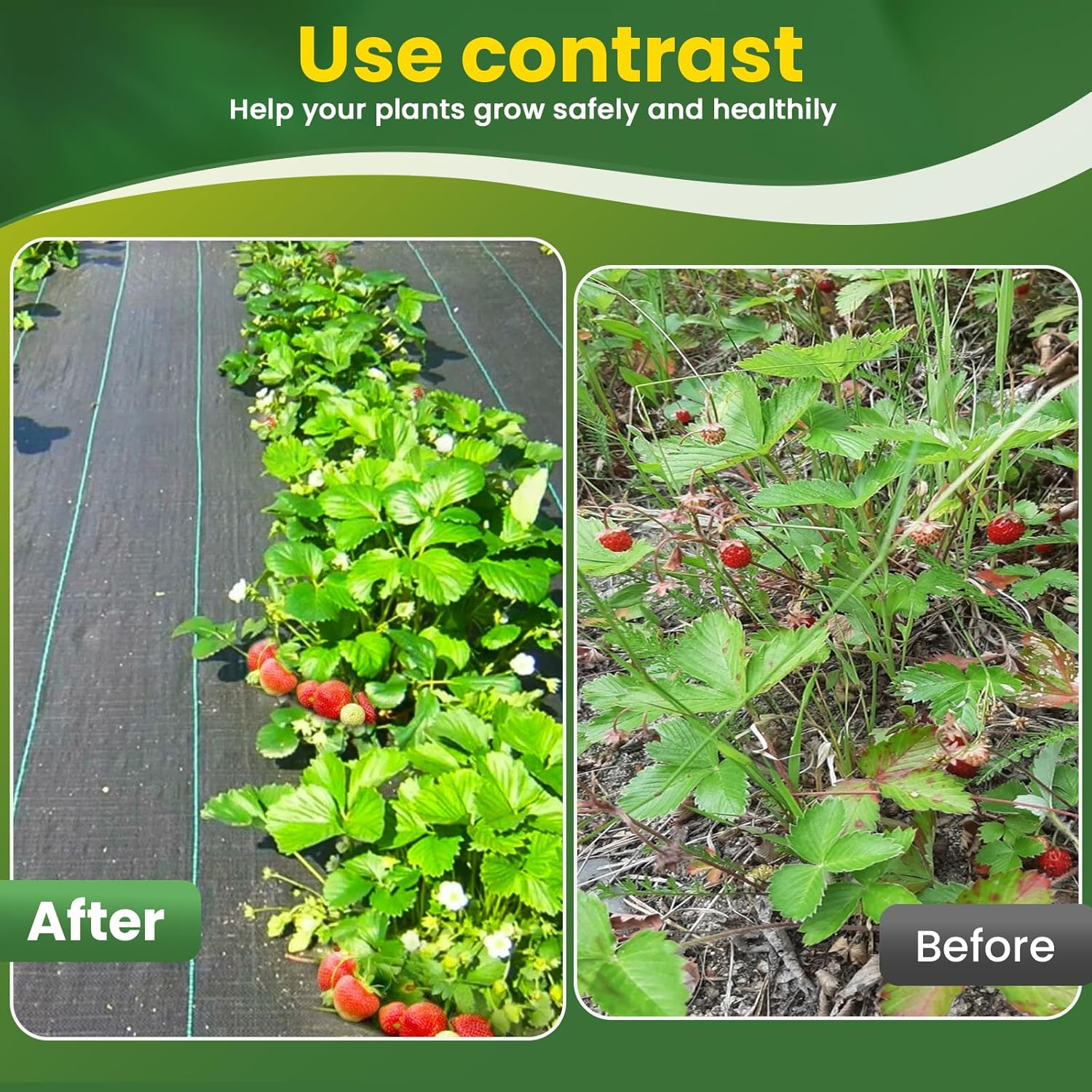 - Multi-Purpose Weed Barrier Fabric – Our 6ft x 200ft weed barrier fabric heavy duty is perfect for gardens, agriculture, and industrial use. Landscape fabric use for landscaping fabric, garden fabric, driveway fabric including greenhouse, vegetable patch, flower bed, artificial grass, sidewalk, driveway, etc. The green alignment stripes of weed barrier fabric make planting and trimming easier for a neat, professional look