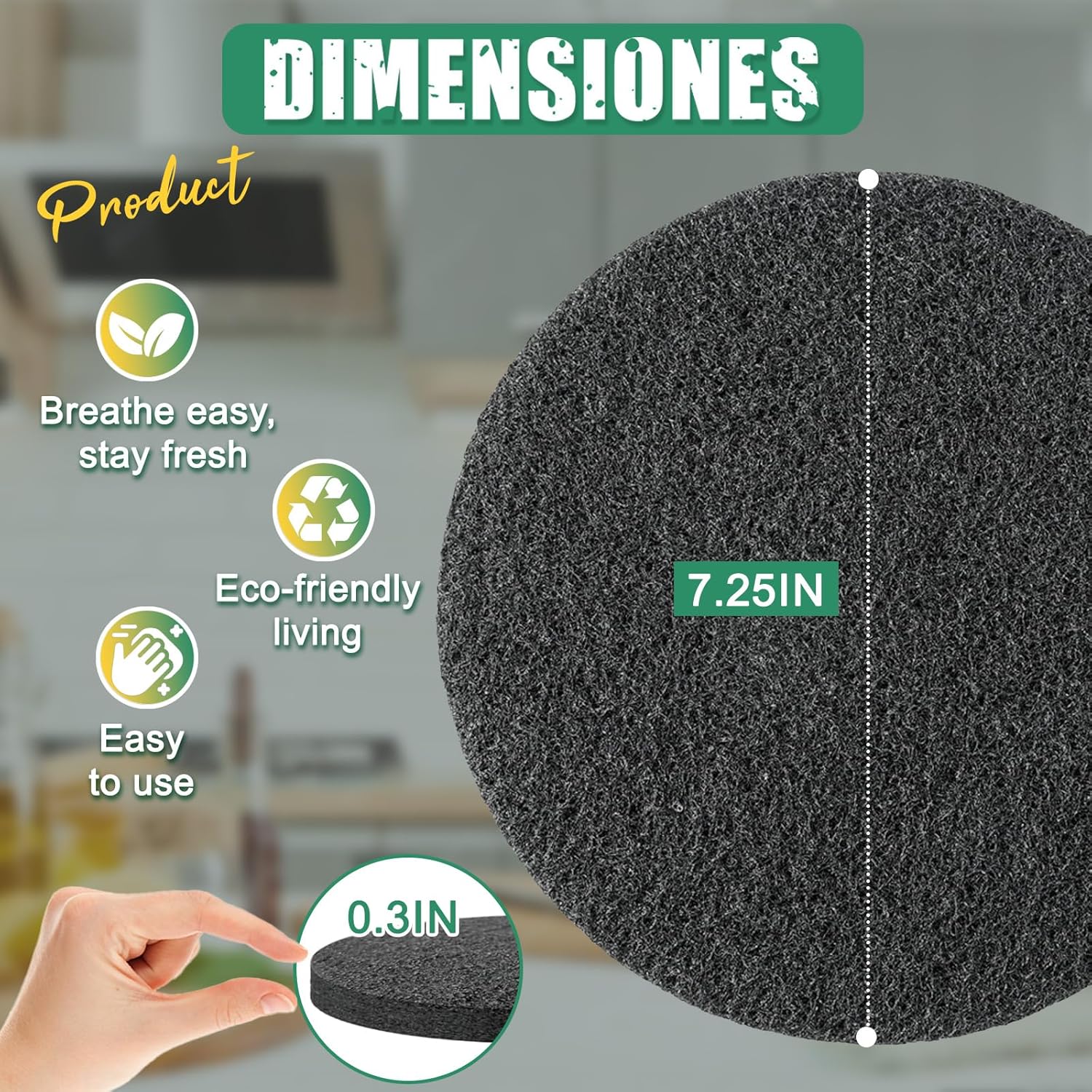 - 【Universal Fit】: Each charcoal filter has a 6.7-inch diameter, making it compatible with most compost bin filter lids. They can be trimmed to fit 4", 5", 6", and 6.7" lids, or placed loosely in 8" lids—perfect for DIY adjustments.