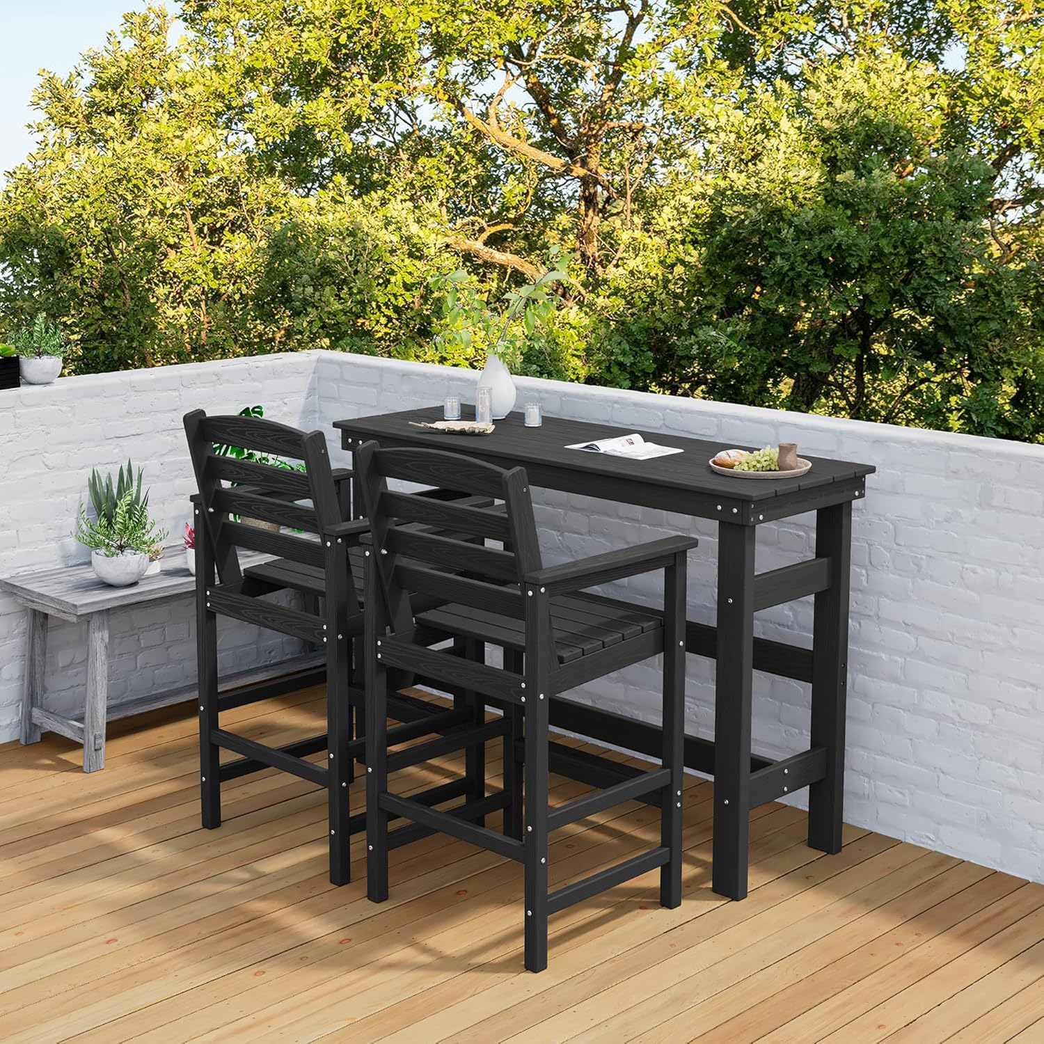 SERWALL Outdoor Bar Table and Chairs Set, Adirondack Bar Chairs Set of 2 and Bar Height Table, All Weather HDPE Outdoor Patio Bar Set, Outdoor Furniture for Outside, Poolside, Backyard, Garden, Black
