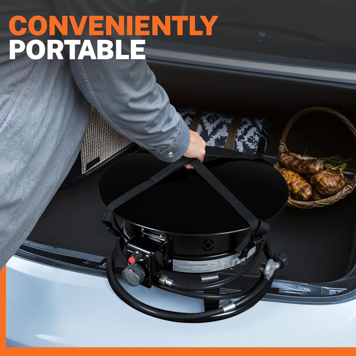 GUNJI 19-inch Portable Propane Fire Pit Table for Outside, Smokeless Gas Fire Bowl with Auto-Ignition, Lid & Carry Kit, for Patio, Camping, Tailgating, Deck, Backyard, RV
