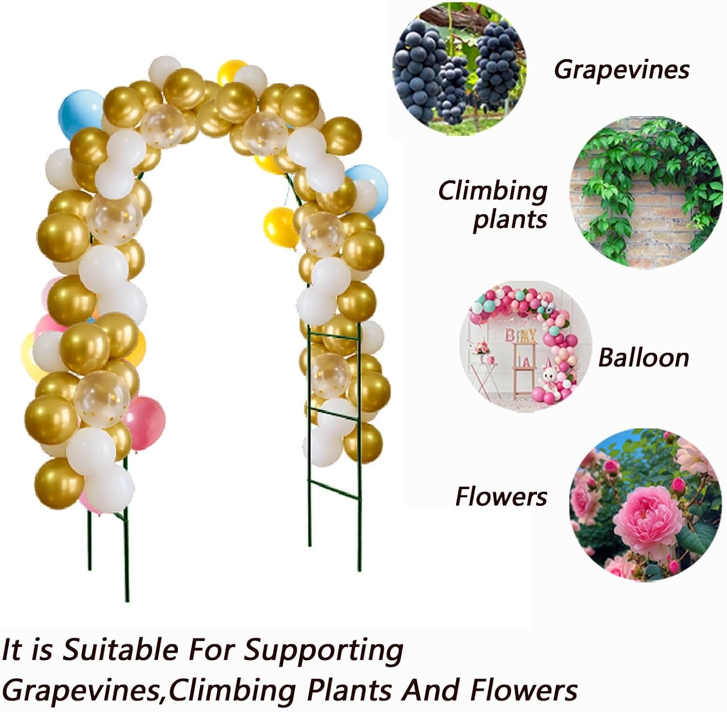 - Multiple Uses:It can be used as a support for climbing plants,or decorated with flowers,ribbons,balloons,string lights,etc.Suitable for backyards,weddings,parties and other scenarios