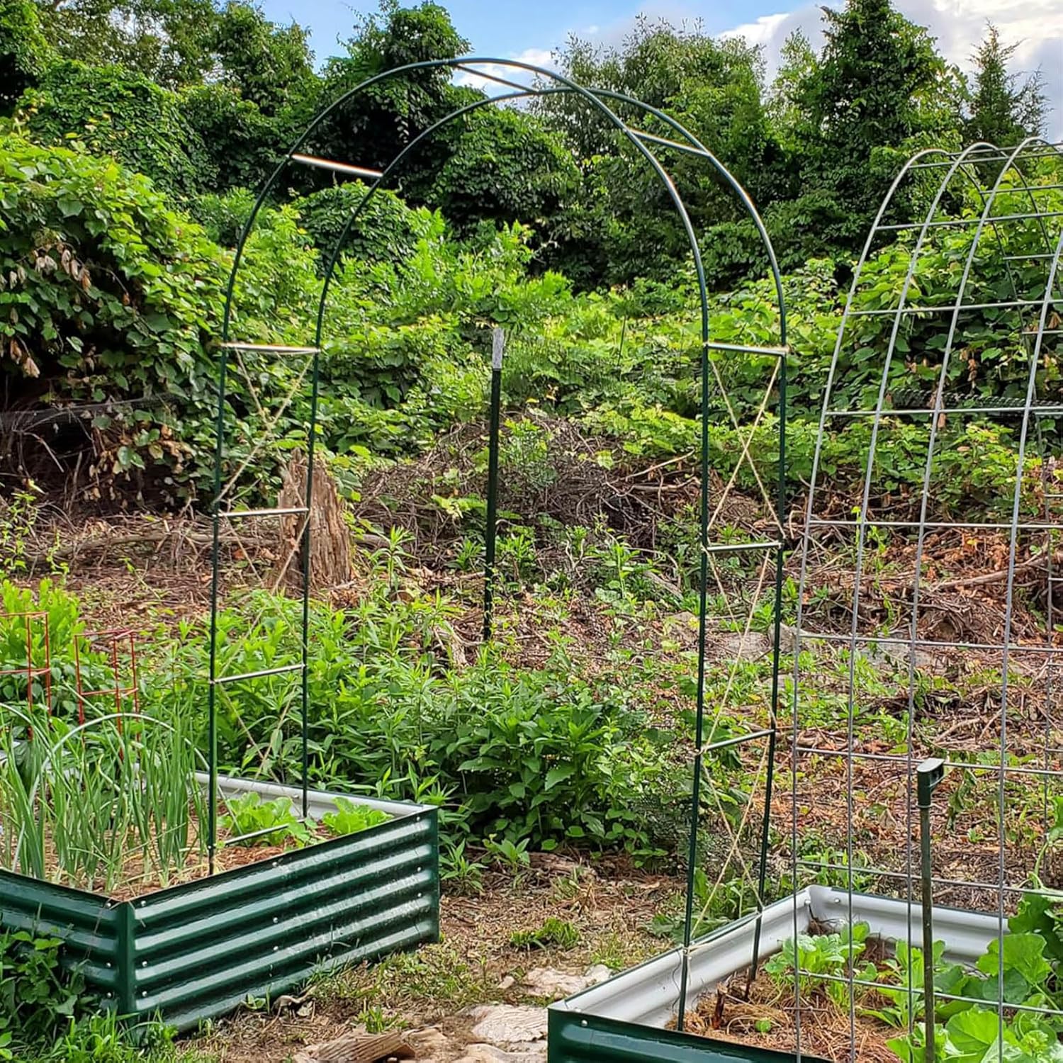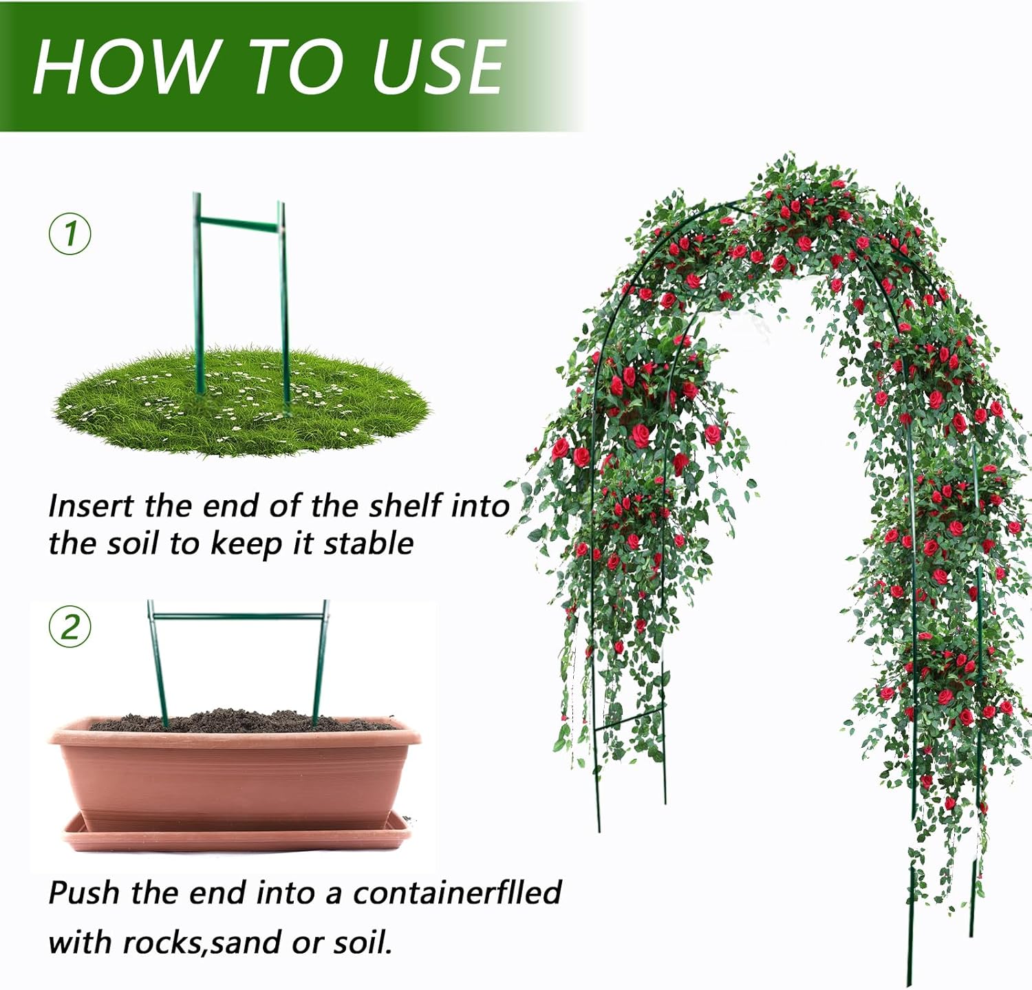 - Multi-functional Design:The green arch trellis can be assembled into two forms: 55.1inches wide by 94.5 inches high,or 91.2 inches wide by 76.8 inches high,easily blending into various scenarios