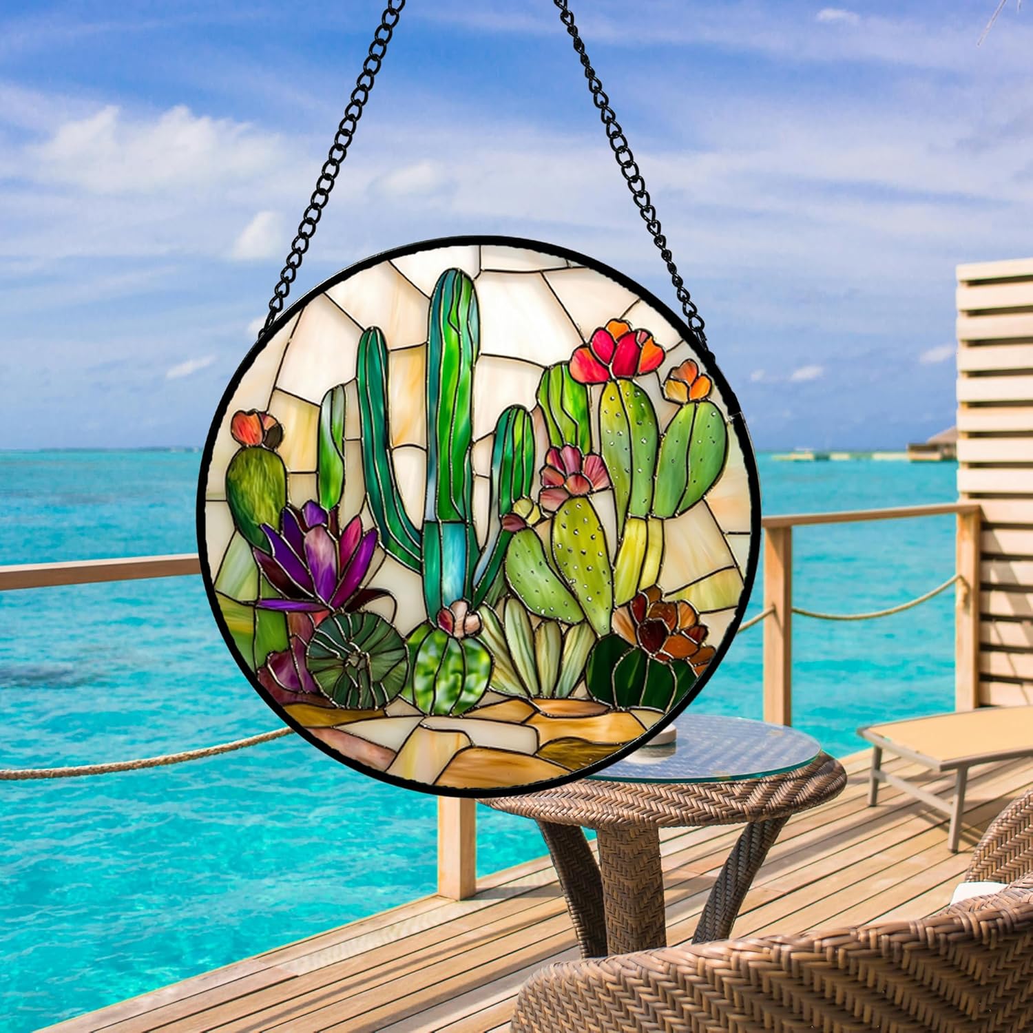 - Versatile and Easy to Hang: This stained glass window panel is a breeze to install with its included metal chain. Beautiful patterns are the perfect addition to your windows, doors, and home.