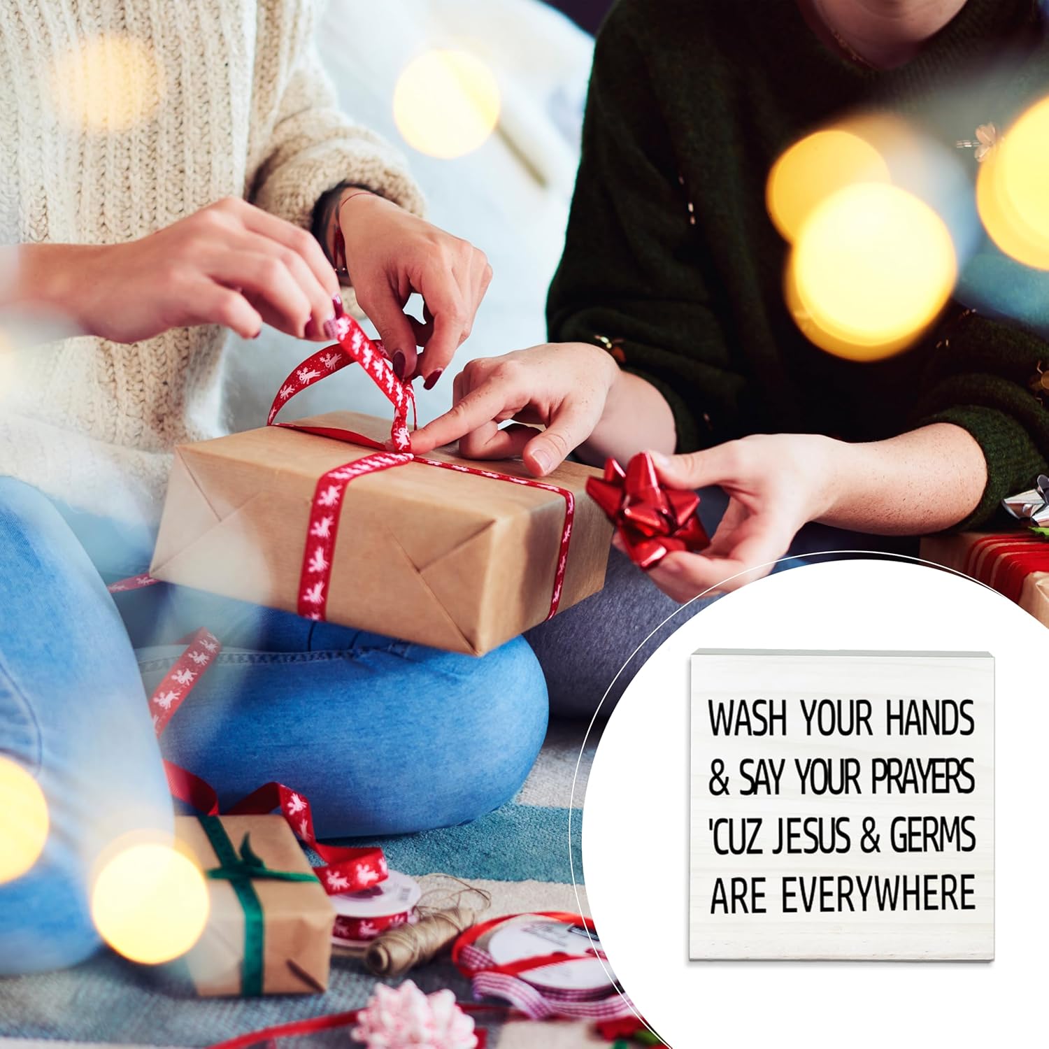 Wash Your Hands And Say Your Prayers Wooden Sign-Funny White Block Plaque Desk Decoration-5x5 inches Rustic Wood Block Gifts For Friends Family Christian-Home Bathroom Tabletop Favors & Supplies-A04