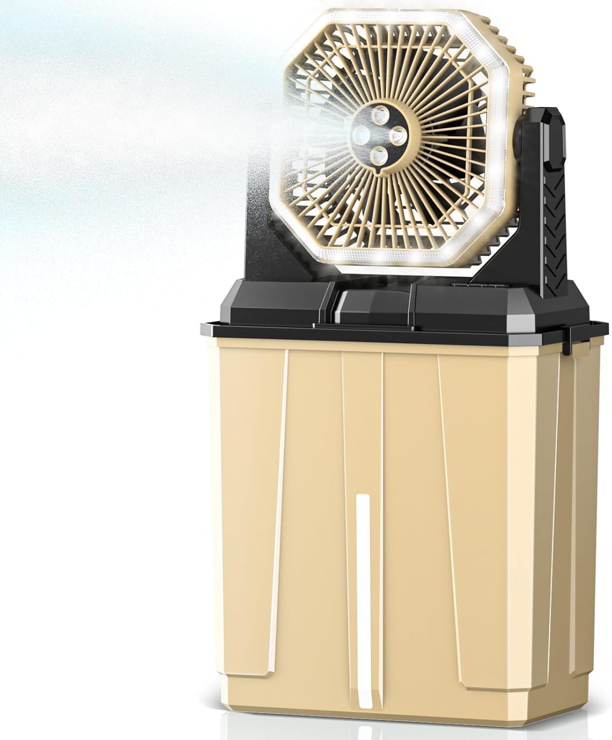 Coolice Camping Bucket Misting Fan 8L Water Tank, 24000mAh Outdoor Misting Fan with 2 Spray Modes & 3 Speeds, 3-speed LED lights Floor Cooling Fans, Portable Camping Fans for Patio, Garden, Worksite