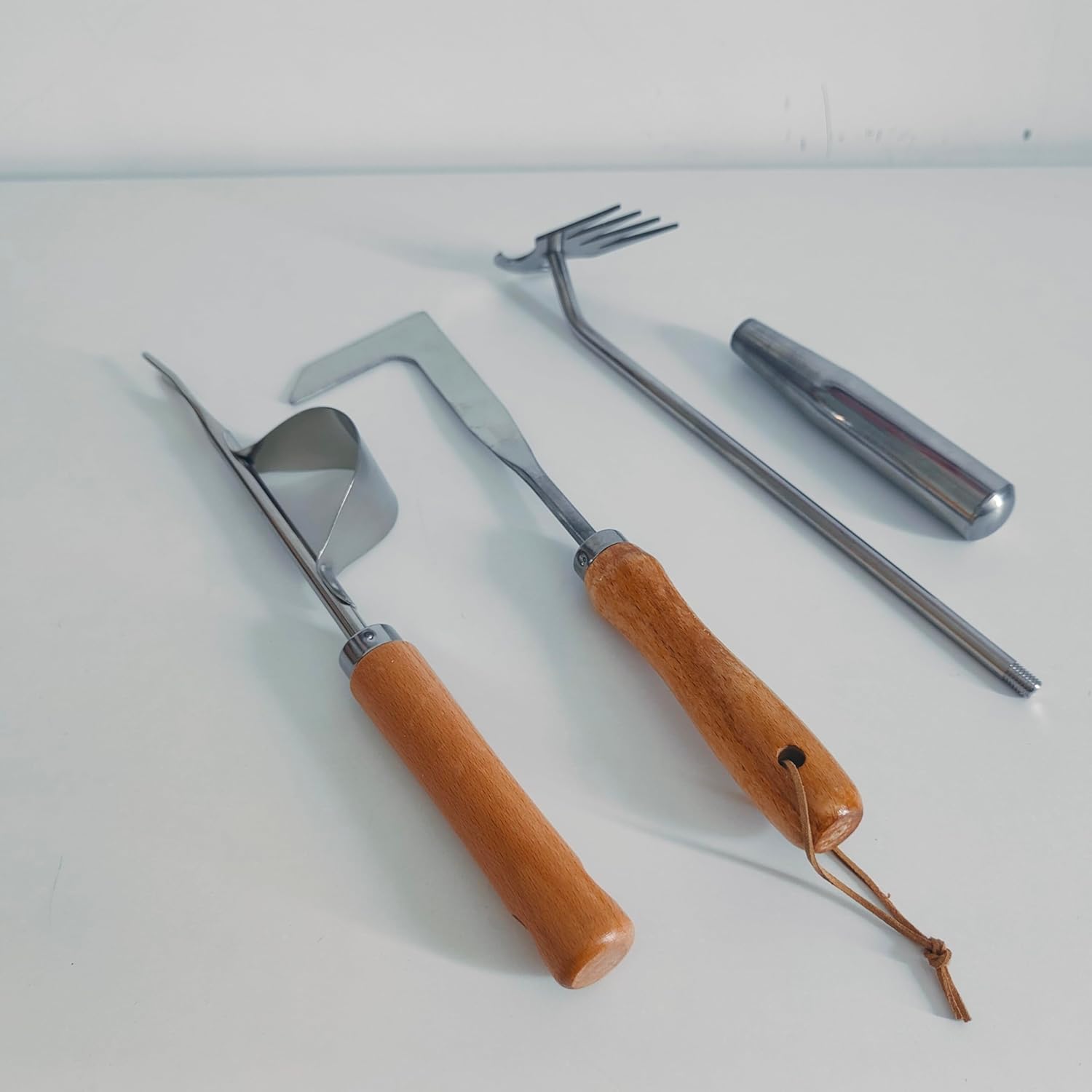 - The L-shape and V-shape weeder are made of durable and practical fir wood handles and sturdy stainless steel weeding blades, with hanging holes on the handles. The materials are sturdy and practical.