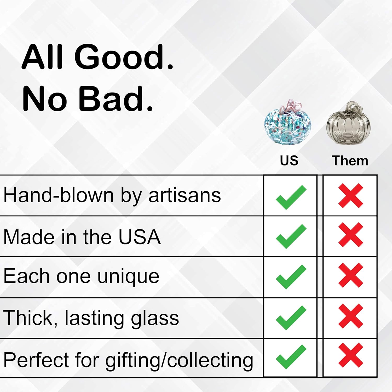 - Each Glass Pumpkin is carefully hand-crafted out of glass, making every piece unique in color and shape.