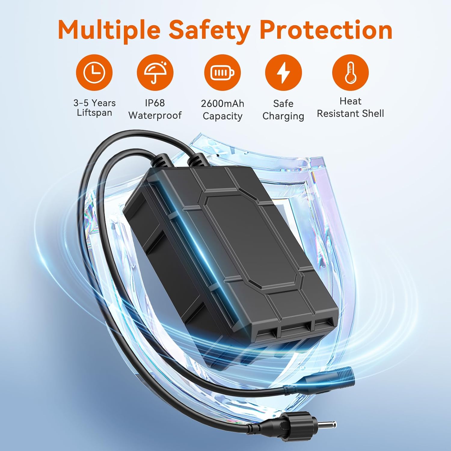 - ⛲【Multi-protection & Easy to Use】The backup lithium battery has better sealing and waterproof, prevents the dust or water drop from getting into the battery and damaging battery lifespan. The backup lithium battery is easy to use, just plug and play. (Tip: please place the battery backup under the solar panel to avoid sun and rain)