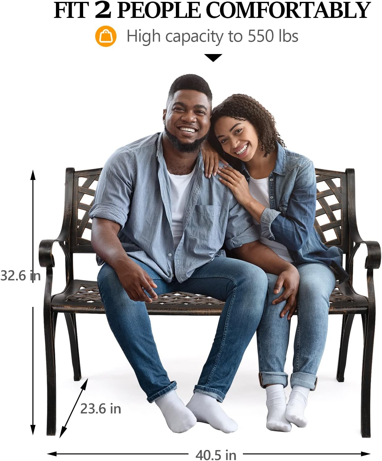 - COMFORTABLE SEAT: The 38 inch seat is enough for 2 people with a weight capacity of 550 pounds. It comes with ventilate seat, smooth and round arm, durable backrest which provide comfortable seating experience