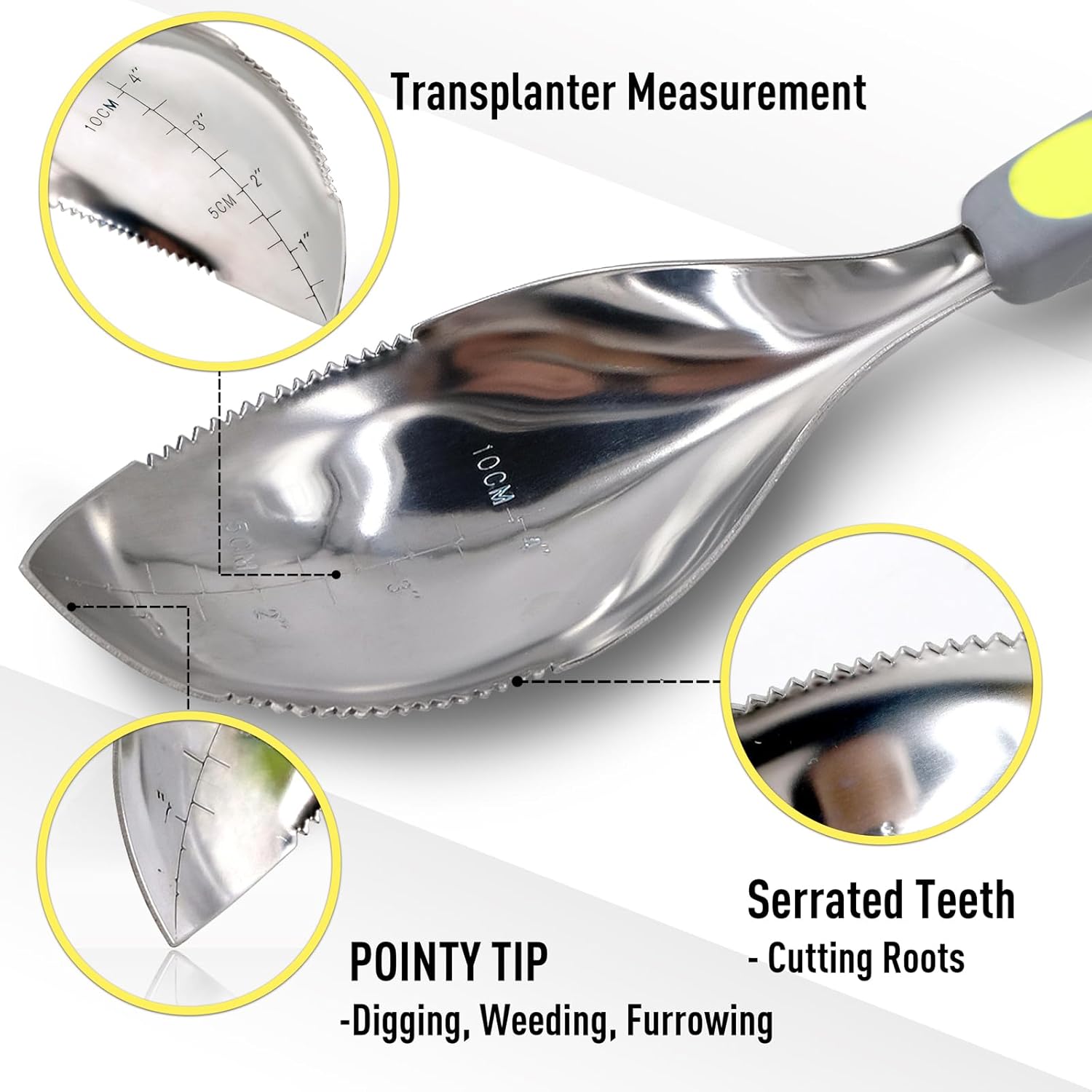 - Heavy-Duty Stainless Steel Blade – The hand shovel is made with rust-proof, high-quality stainless steel, this durable hand gardening trowel stays sharp and withstands tough soil, roots, and outdoor conditions