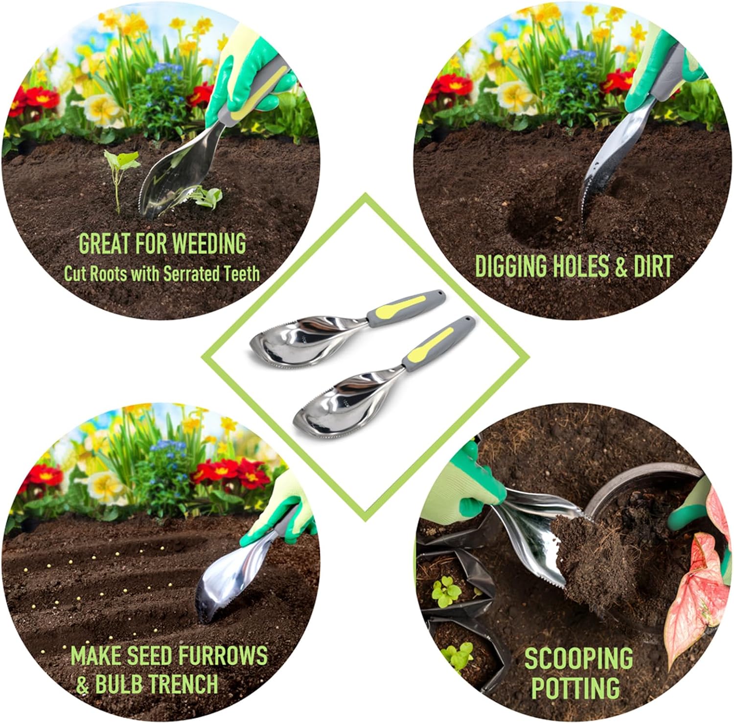 Jardineer 2Pack Garden Trowel, Stainless Steel Hand Shovel with Ergonomic Handle, Multi-Use Soil Scoops for Digging, Planting, Transplanting, Cultivating(Blue)