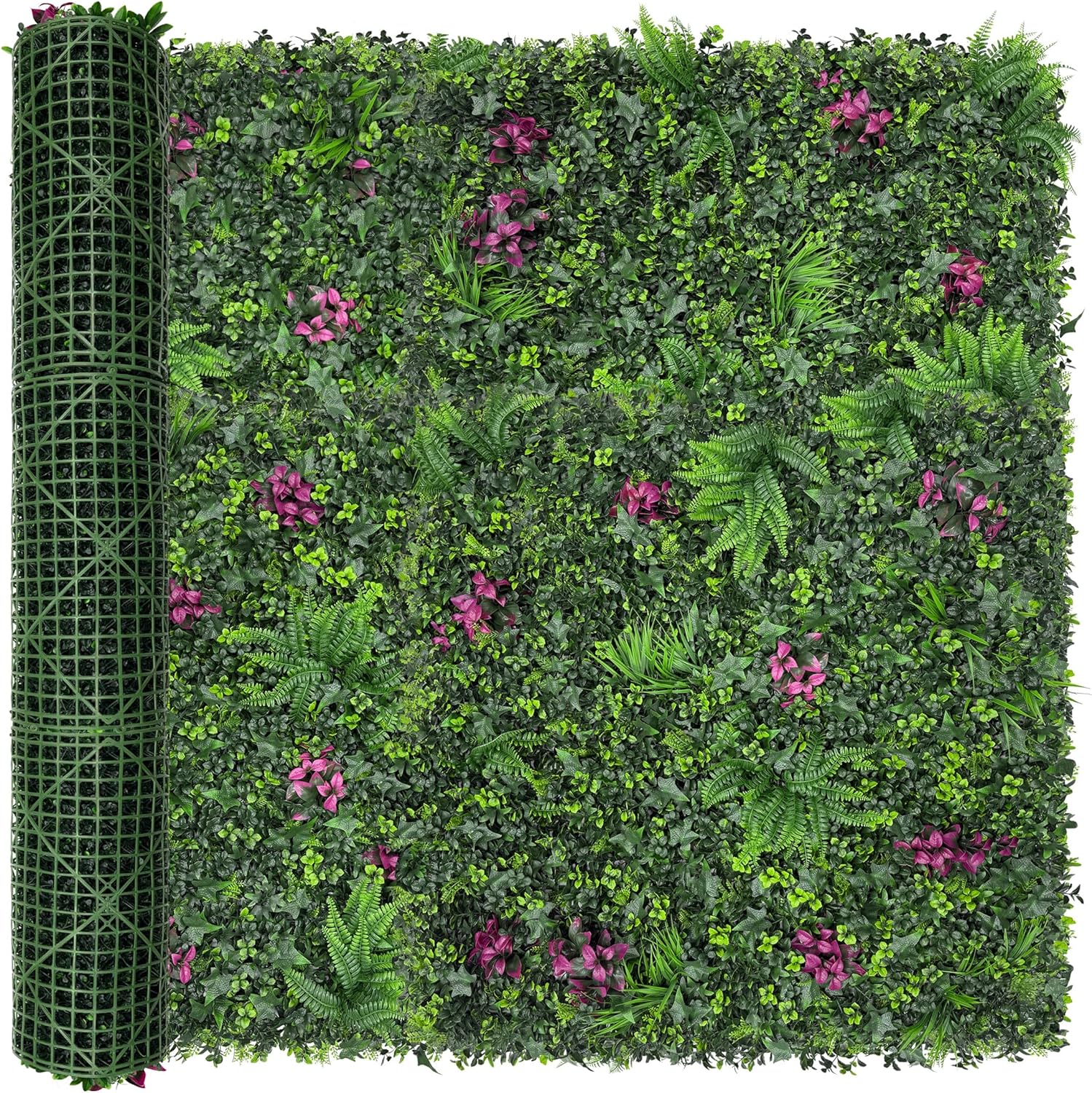 - 【Ultra-Realistic Appearance】: Our greenery wall grass panels have a lifelike shape that resembles a real plant and blends in with nature when placed outdoors.And it consists of many different plants and flowers that make it more vivid, realistic and vibrant.And different from the real plant,our fences don't need watering, fertilising etc. and stay in season!