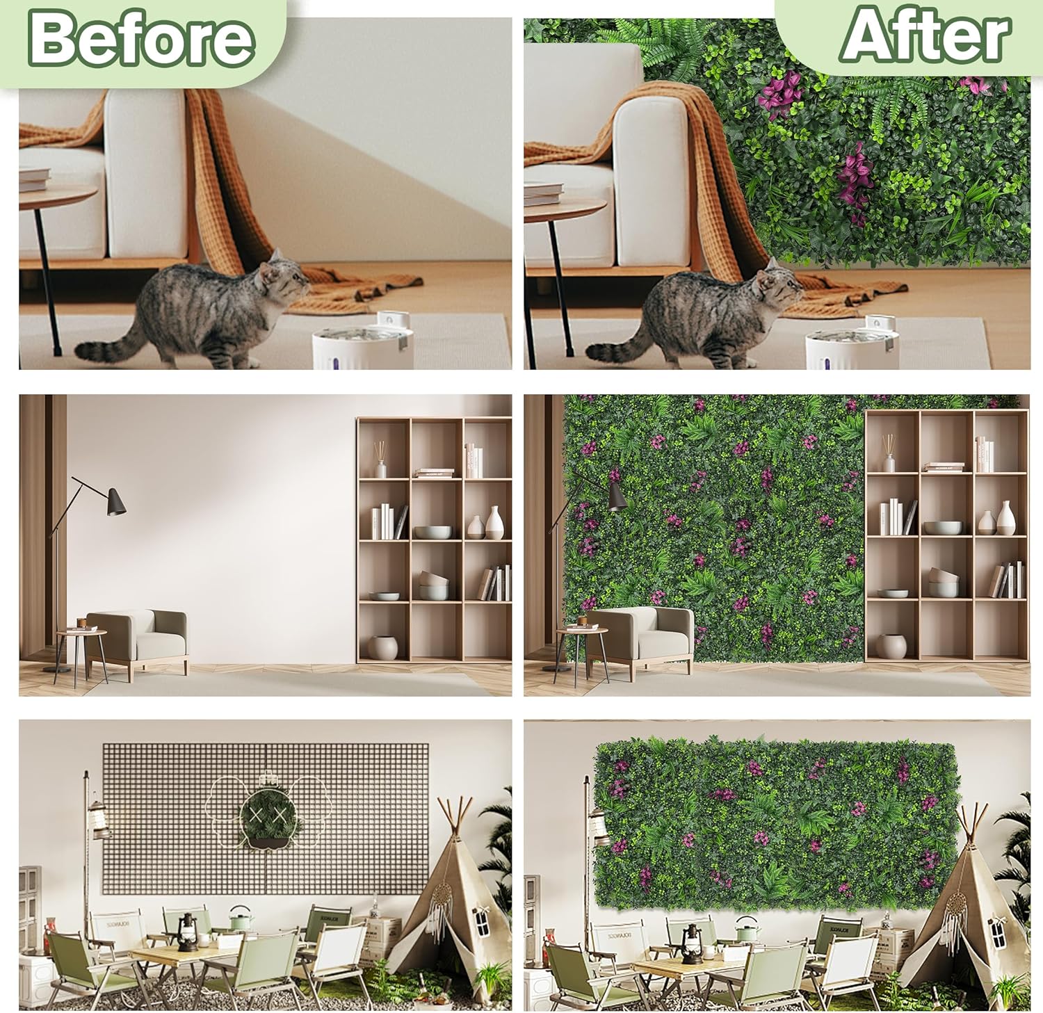 - 【Suitable for various occasions】:Synthetic green walls serve to create an engaging visual backdrop. Versatile for both indoor and outdoor applications, they are ideal for walls, roofs, fences, balcony dividers, railings, swimming pools, balconies, gardens, patios, scaffolding, as well as for special occasions like weddings, parties, or Christmas decor. They can also enhance the ambiance of bedrooms, living spaces, and office environments. This boxwood hedge plant is a multifaceted solution for your design needs.