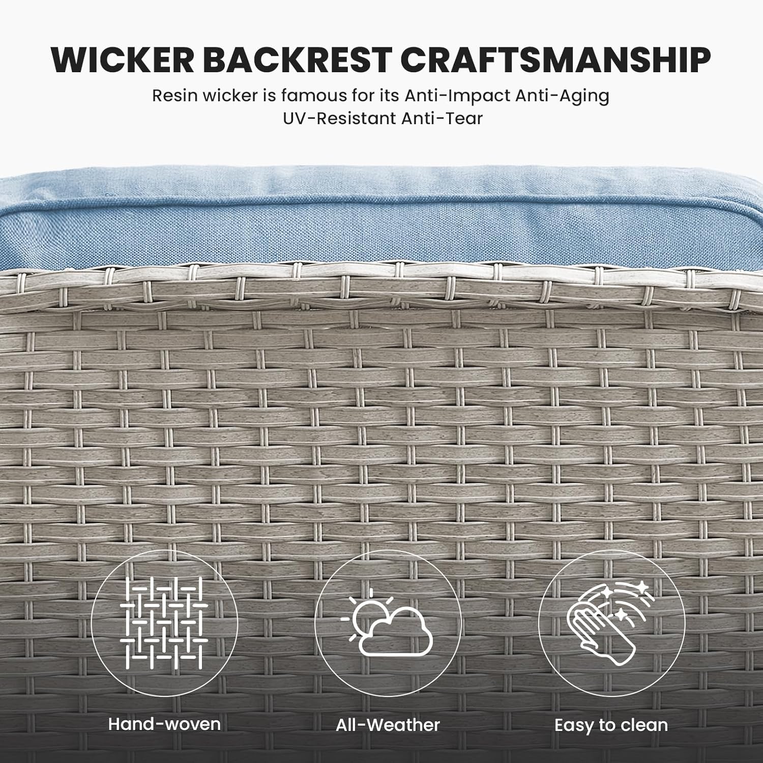 - 3.Durable Material: This outdoor wicker sofa is made of hand-woven weather-resistant PE rattan and powder-coated steel frame, which makes the sofa couch stronger and more durable. The wicker sofa can hold up to 600 pounds of weight capacity.
