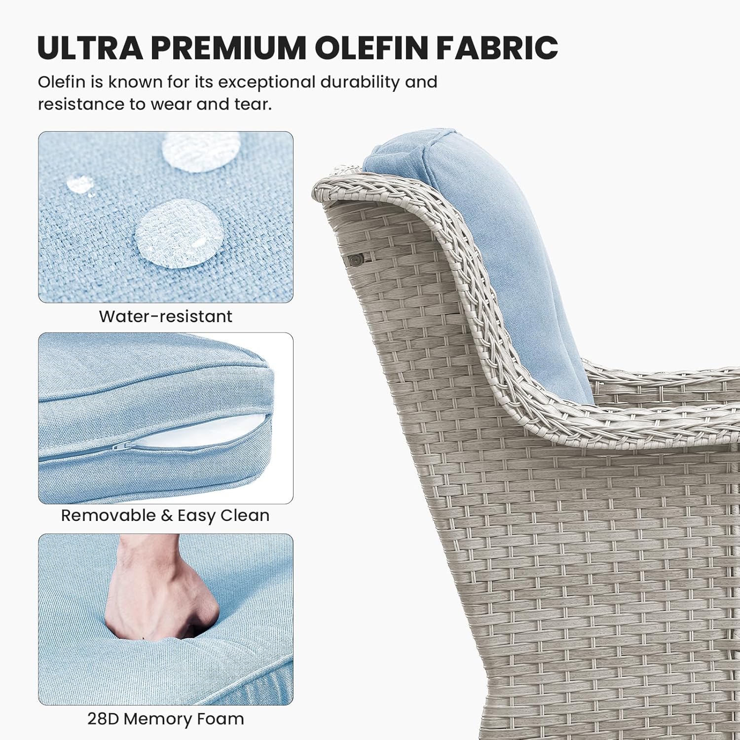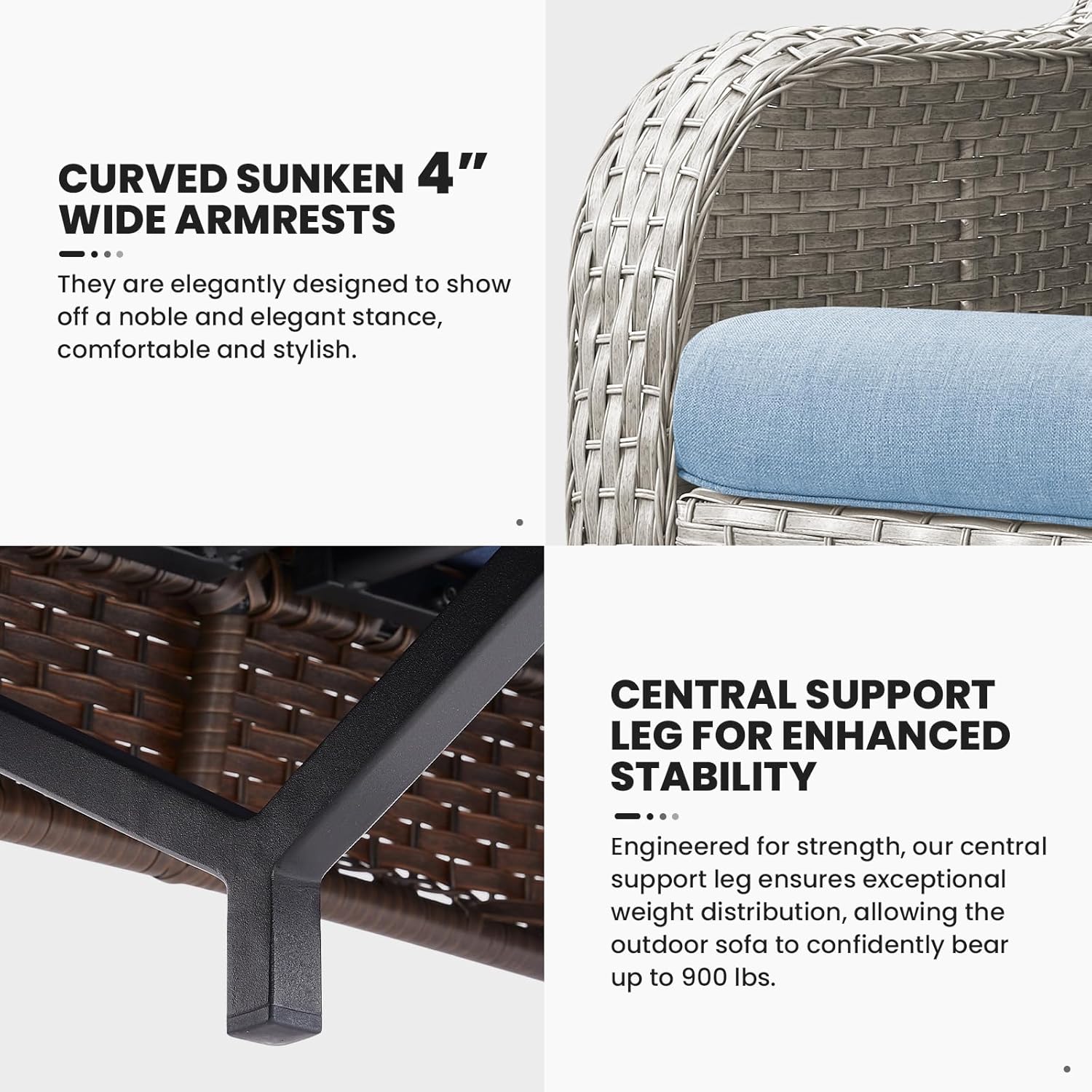 Outdoor Sofa Couch Wicker Furniture 3-Seater Rattan Sofa Patio Furniture Set with Washable 4“ Baby Blue Cushions
