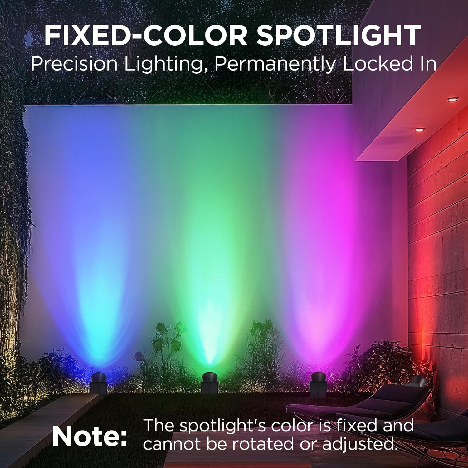 - Reminder: Package includes one fixed red, one green, one blue, and one violet-purple spotlight - all with non-adjustable, permanent colors designed to work in harmonious combination. This carefully engineered quartet of distinct hues creates versatile lighting effects, from vibrant festive displays to dramatic atmospheric ambiance, with no rotation or color adjustment required for immediate impactful illumination.