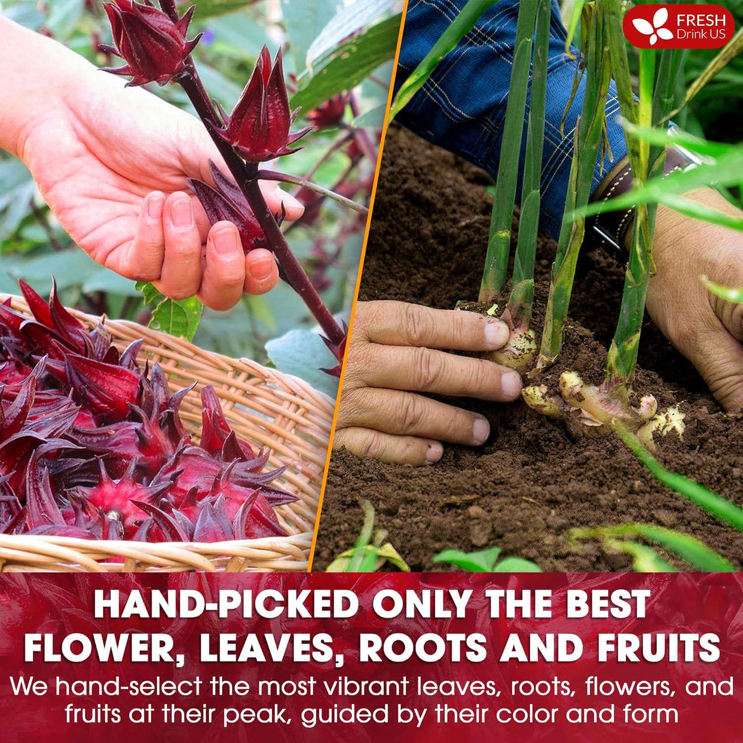 FreshDrinkUS, 60 Tea Bags Super Hibiscus Heart Blend– Herbal Tea with Hibiscus Flower, Ginger, Cinnamon Stick, Lemongrass & Rose Hip – Naturally Caffeine-Free, Sugar-Free, Vegan