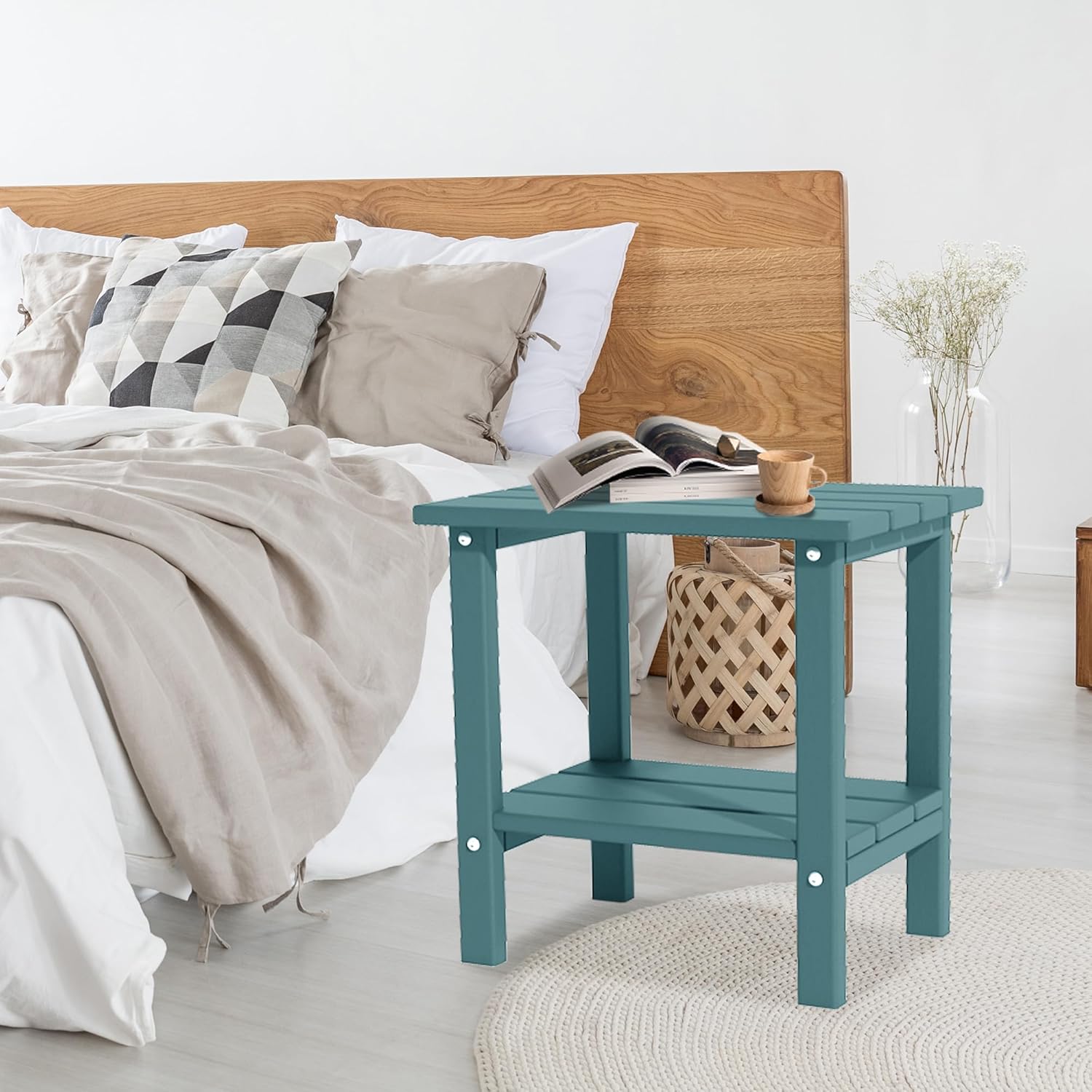 Outdoor Side Table, Weather Resistant HDPE Outdoor Table, 2-Tier Small Patio Tables for Outside or Indoor (Aruba Blue)