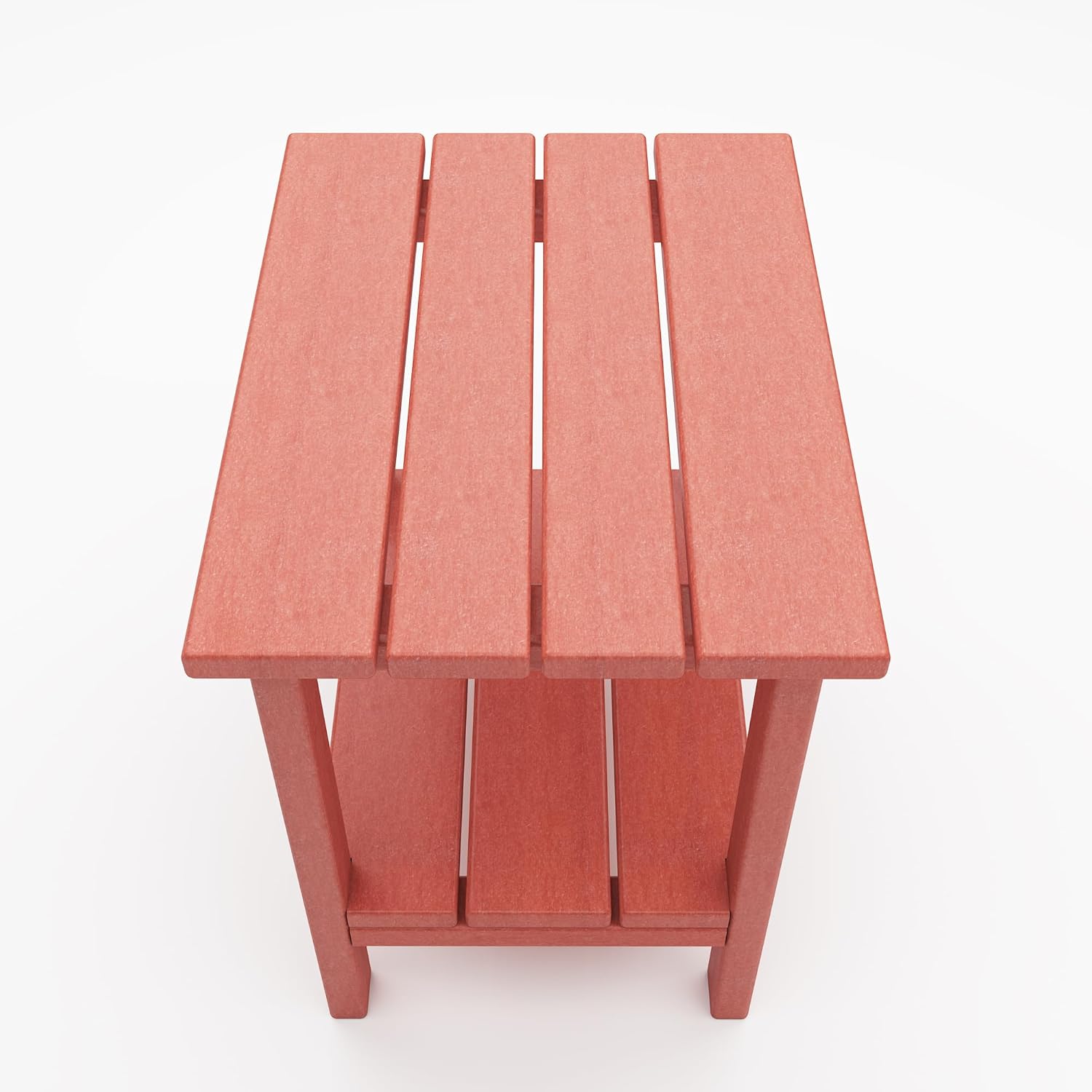Outdoor Side Table, Weather Resistant HDPE Outdoor Table, 2-Tier Small Patio Tables for Outside or Indoor (Red)