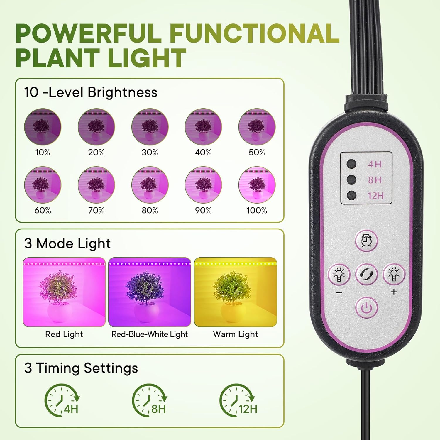 - FULL-SPECTRUM GROW LIGHTS: Equipped with 4 plant growth light strips that simulate sunlight, ensuring each layer gets optimal lighting. Choose from 3 colors (red/warm/blue) and 3 timer settings (4/8/12 hours) to ensure proper plant growth