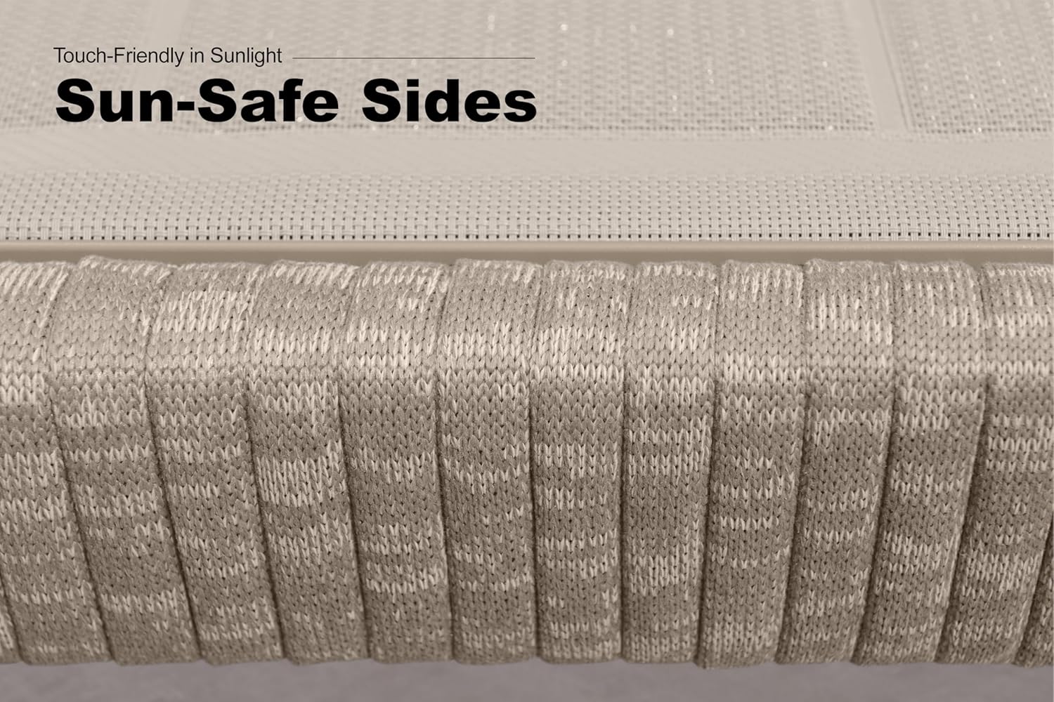 - Stay Cool, Stay Safe: Our outdoor chaise lounge features woven edge strips that shield the frame from direct sunlight, preventing overheating and ensuring a safe, comfortable experience. Relax worry-free, even under the sun!