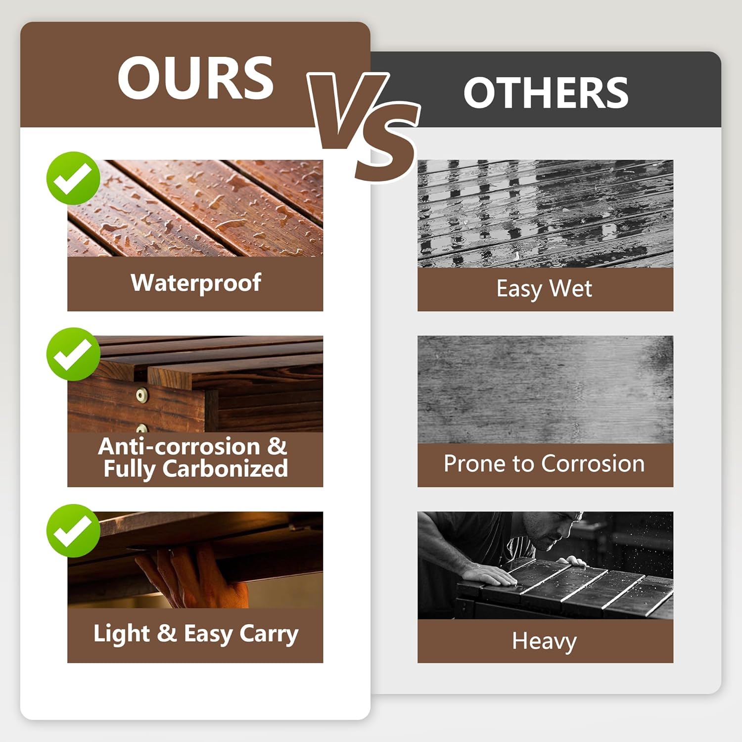 - STRONG LOAD-BEARING - Crafted from cedar wood treated with 300°C high-temperature carbonization, this garden bench resists deformation and corrosion. Thickened planks and rust-proof screws ensure a weight capacity of 330 lbs(35.5")/400 lbs(47.2"), comfortably seating two/three people