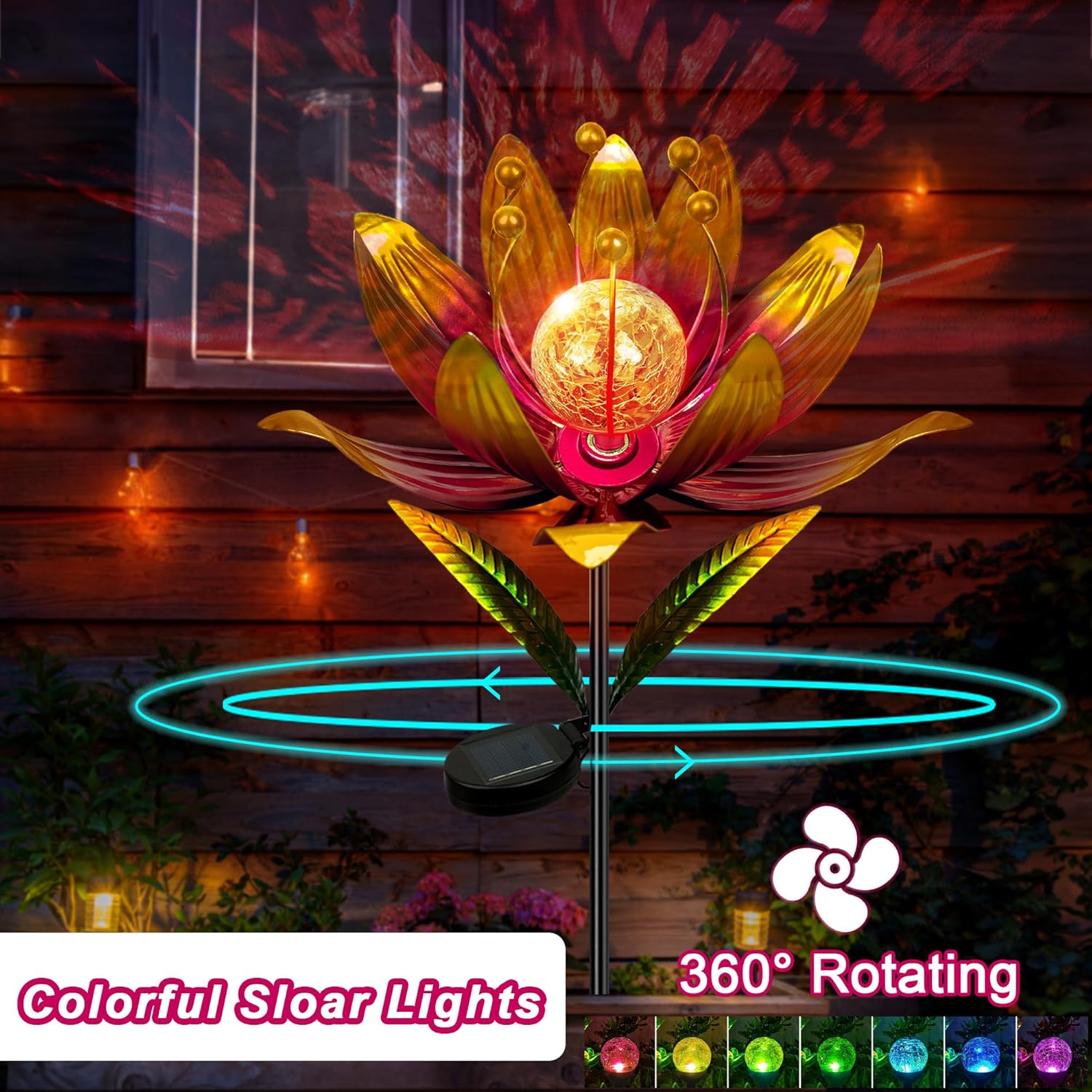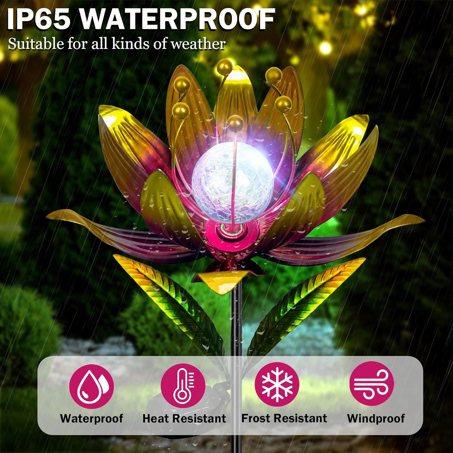 - 【 Colorful Wind Spinner 】Designed according to the shape of lotus flower, wind spinners outdoor is made of sturdy metal structure and exquisite welding technology. The surface is coated with rust-resistant graphic layer, which can prevent the metal from rusting and fading.