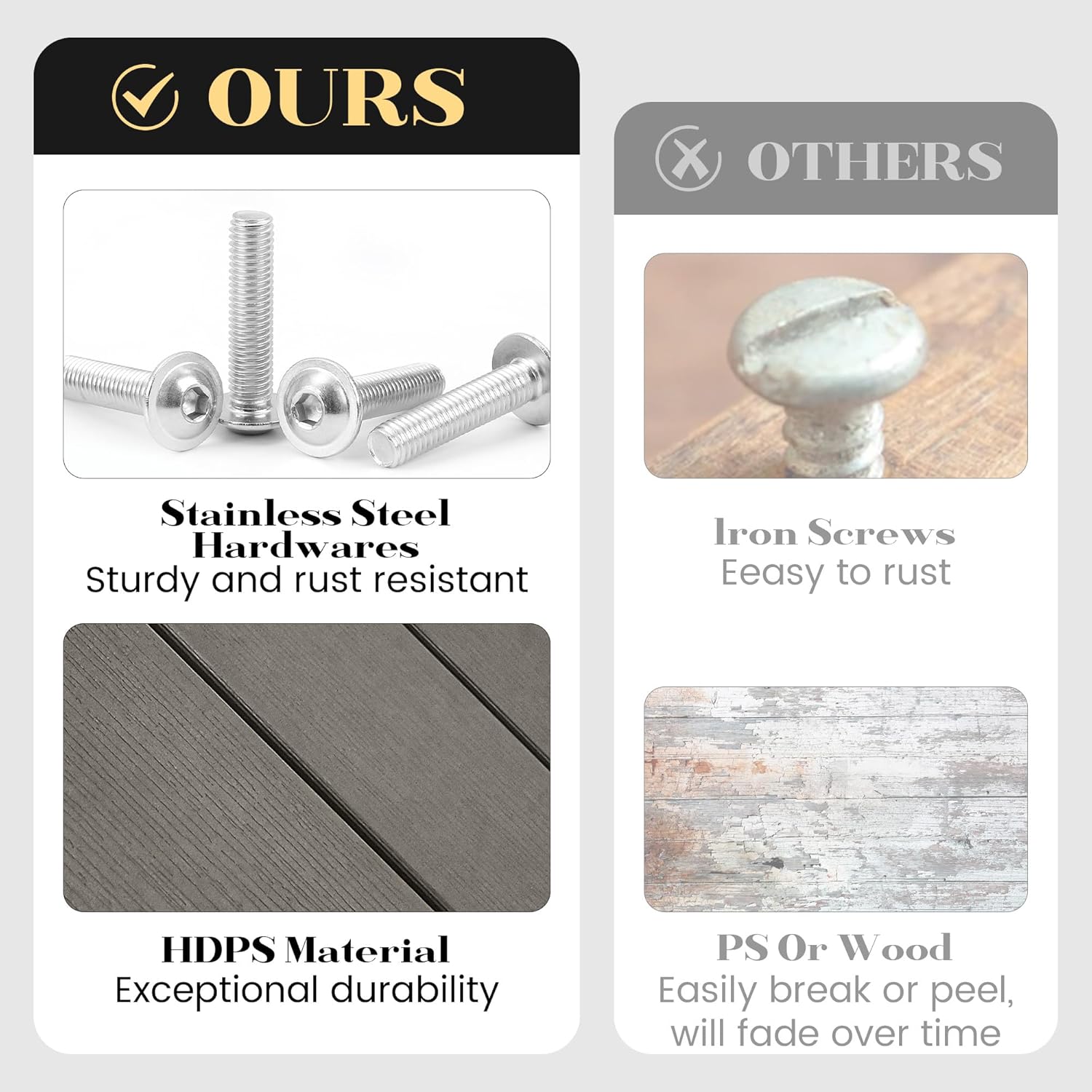- ăLow Maintenance Costsă: Effortless to cleanâjust use soap, water, a sanding sponge, or a soft brush. No painting, staining, or waterproofing needed, saving you time and upkeep costs.