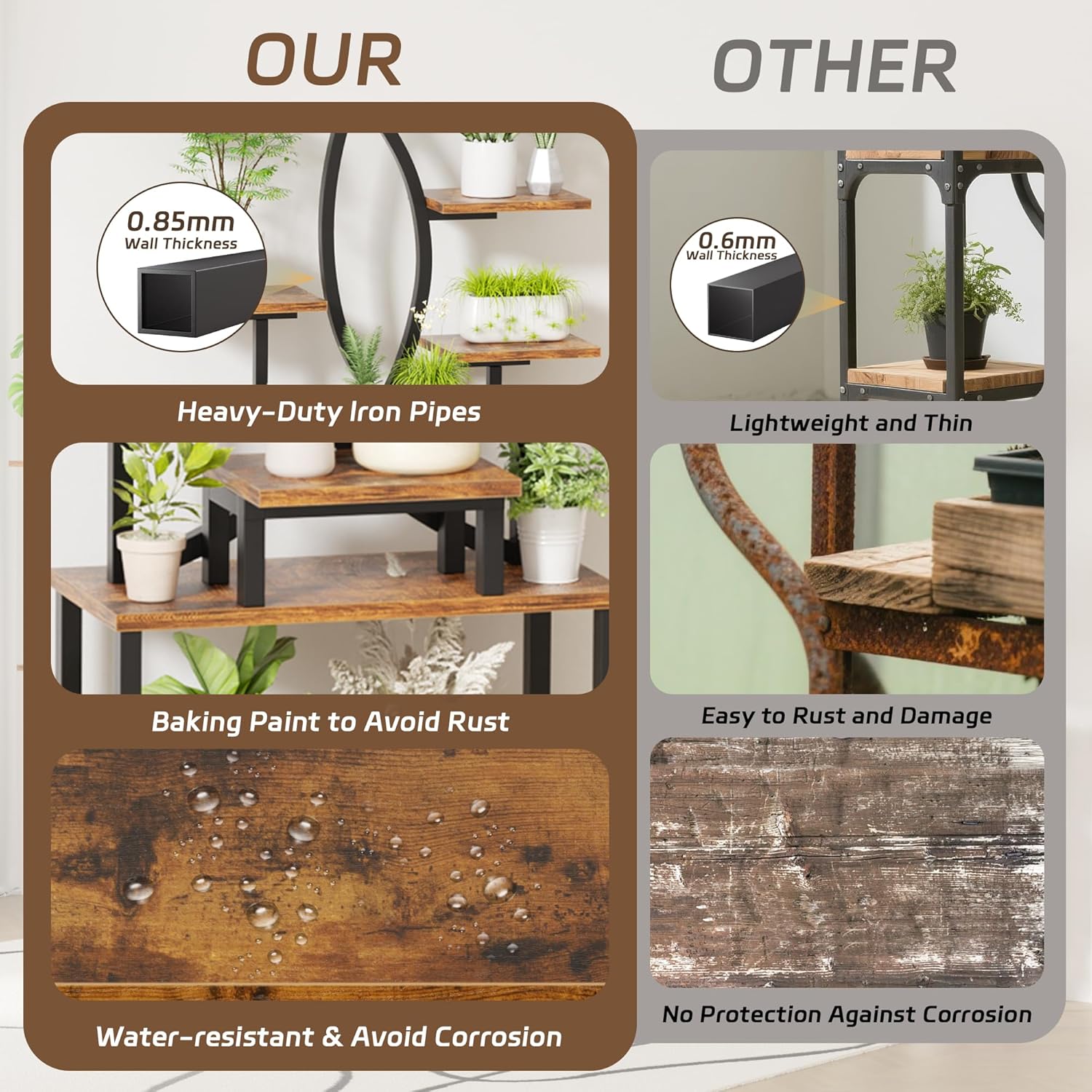 - 9-Tier – 62.5" Tall Plant Stand: With a height of 62.5 inches, this plant shelf indoor with grow light includes 9 shelves and 2 hanging hooks, offering ample room for small to large pots. The vertical structure makes it ideal as a grow shelf with lights, optimizing unused space and turning any corner into a lush garden. This is an excellent grow light shelf solution for maximizing display in limited areas.