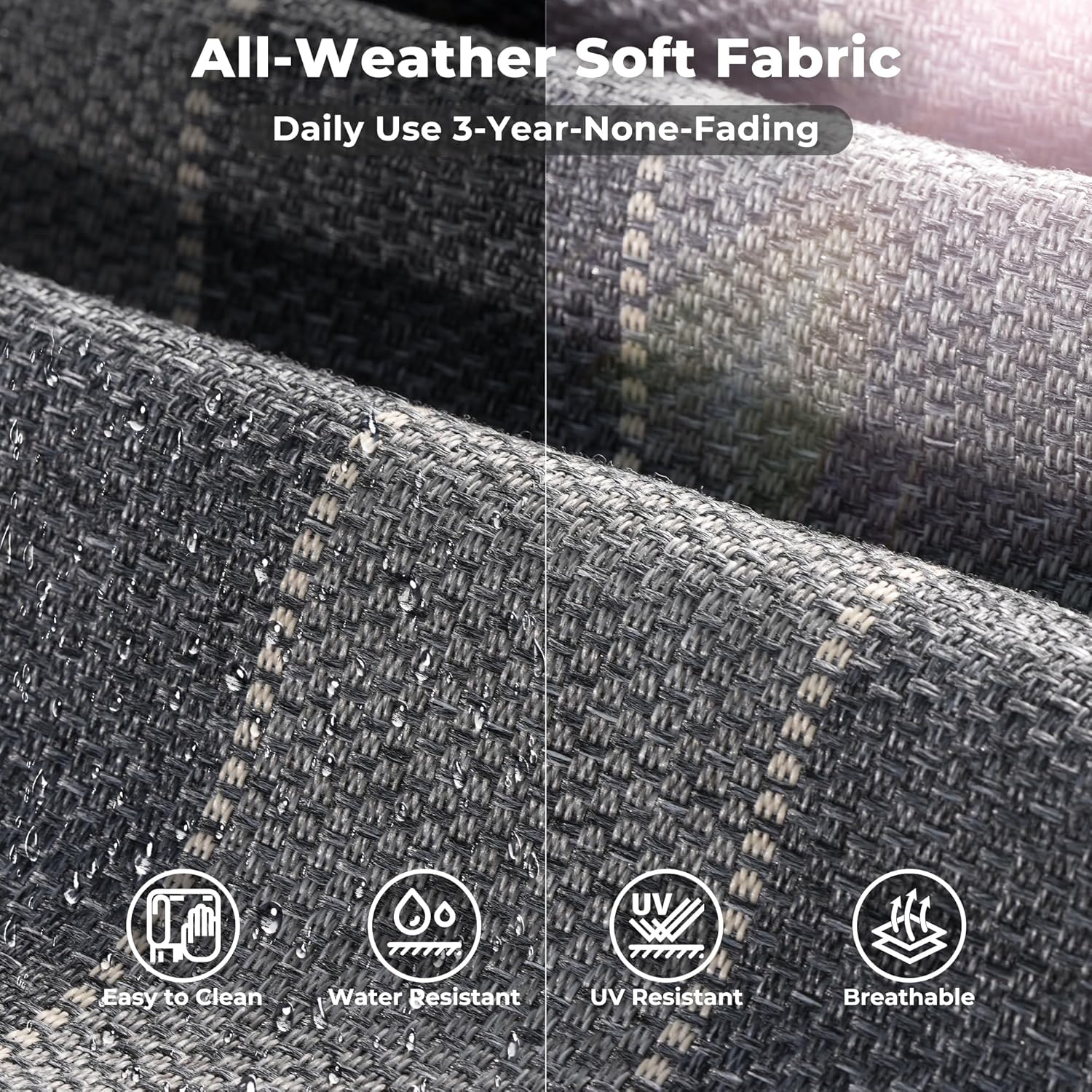 - All-weather Wicker Rattan: Our outdoor sofa sets have very durable PE wicker rattan for all-weather use and a natural texture with good coloring. The high-quality patio seating made of powder coated steel frame ensures good strength and stability