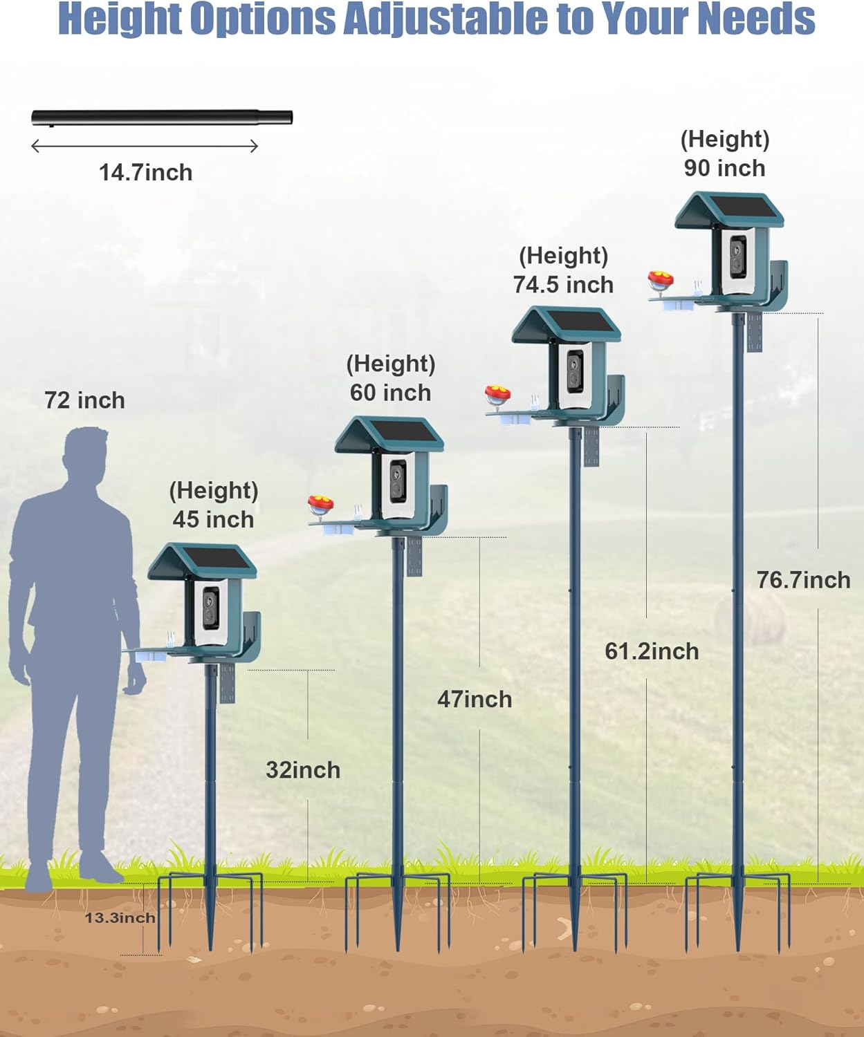 - 【Easy Installation】This bird feeding station reaches a total height of 90 inches and comes with 6.5-inch 5-prong base, 4 x connecting pole, and an L-shaped plate. The slip-in connection method allows for easy assembly, similar to stacking building blocks. Installation typically takes 20 to 40 minutes and no need extra tools. This user-friendly design ensures that anyone, from young enthusiasts to seniors, can set it up effortlessly.