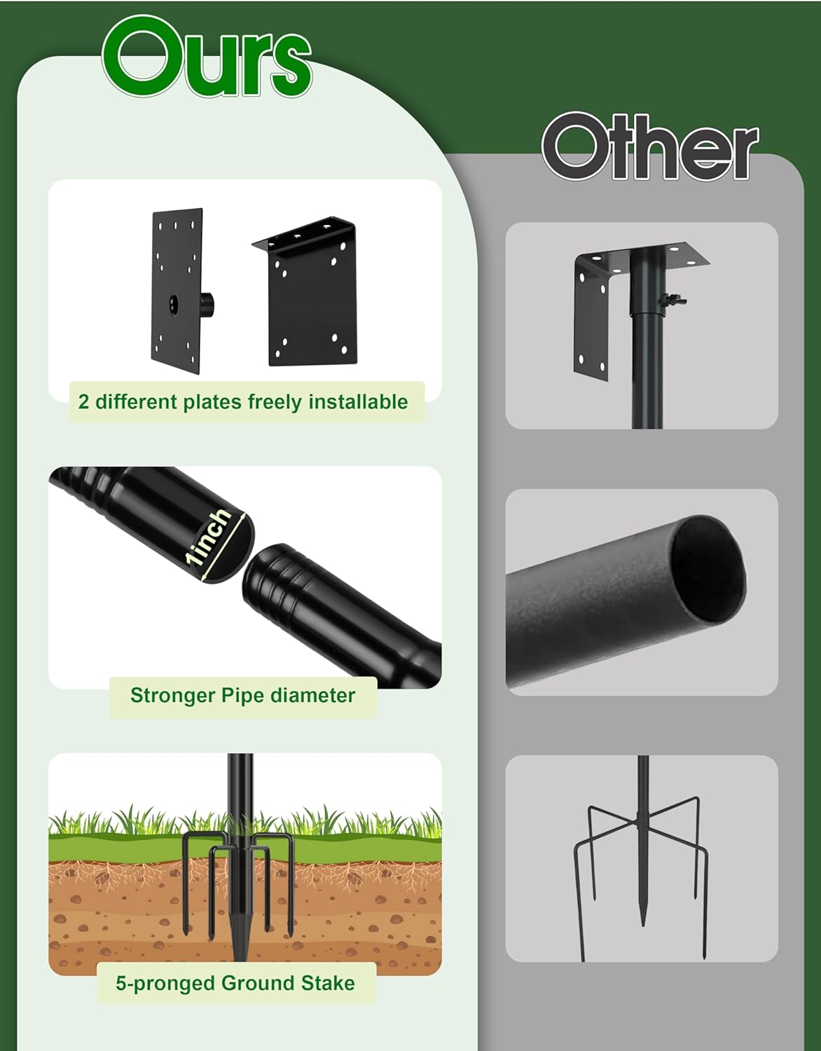 - 3-in-1 Bird house pole: This bird house pole offers three mounting options, allowing you to securely attach a birdhouse or feeder to the bottom or back. The included attachment plate ensures stable installation and can also be used to fix the pole to buildings or wooden fences