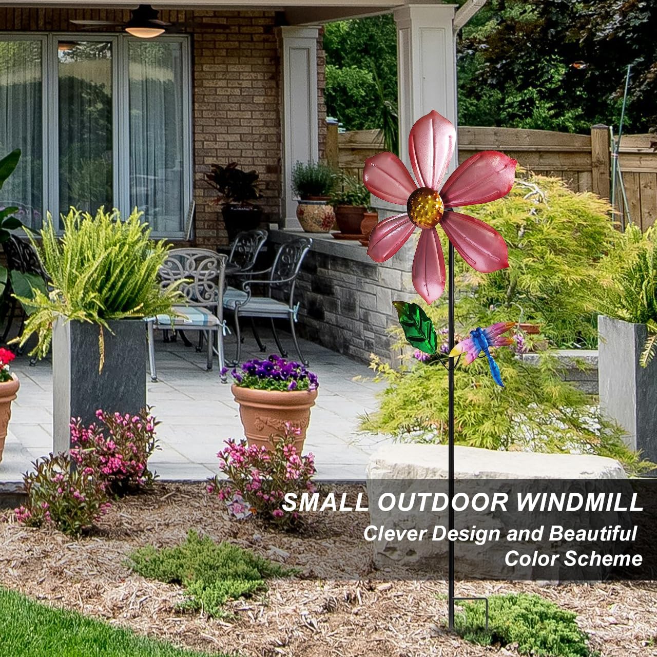 - Smart Design, Smarter Value Outperform flimsy plastic decor with our windproof garden spinner engineering. The weighted base prevents tipping in 15mph winds, while the seamless ball-bearing rotation works in gentle zephyrs. Unlike bulky large yard windmill installations, this space-efficient 36-inch height suits urban balconies and suburban lawns equally.