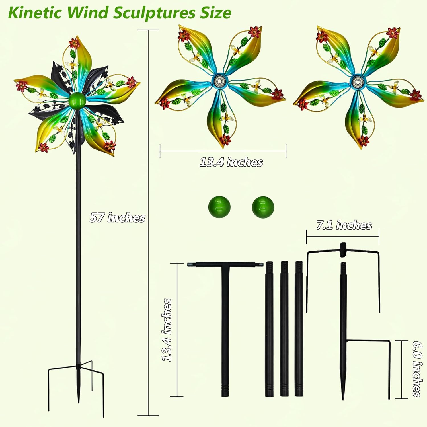 - Adjustable Height Windmill for Yard: This 13.4" diameter garden wind spinner stands 57" tall; Easily adjust height by removing center pole; Multi-section metal pole design ensures flexibility and convenience