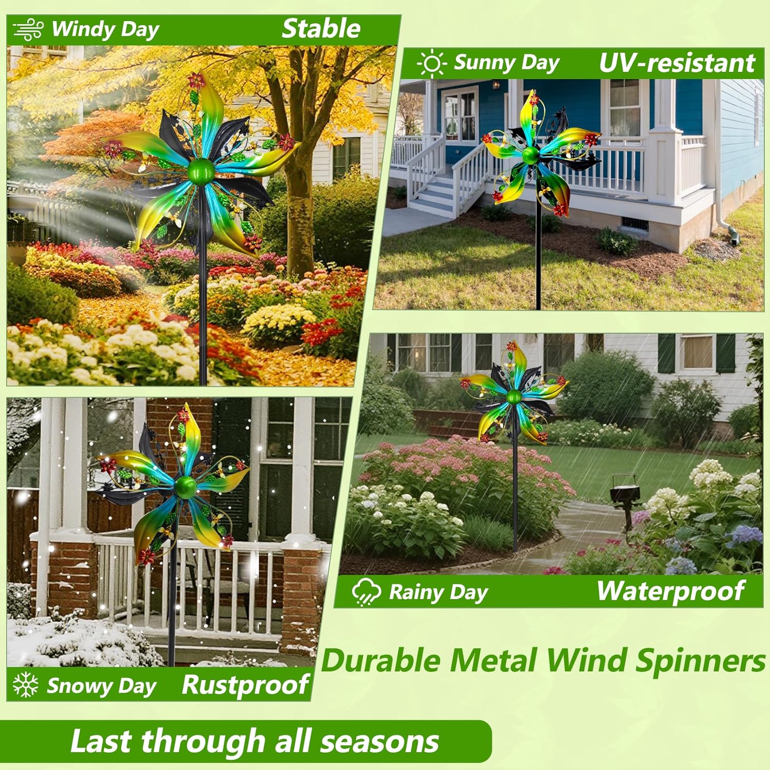 - Durable Metal Wind Spinners: Crafted from durable metal with waterproof, rustproof, and UV-resistant coating, this garden wind spinner is built to last through all seasons