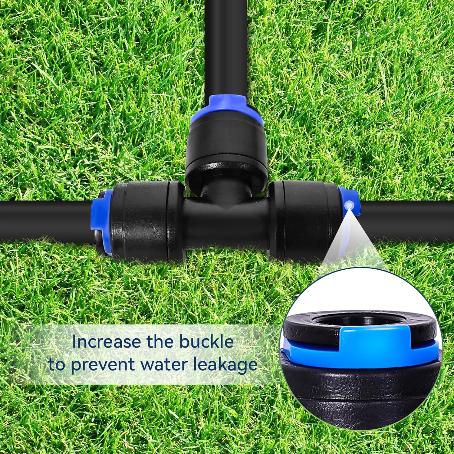 10 Pack 1/4" Drip Irrigation Tee Connectors, Quick Connect Universal Drip Irrigation Tubing Coupling Valve, Connector Locking Fitting for Sprinkler or Drip Irrigation System