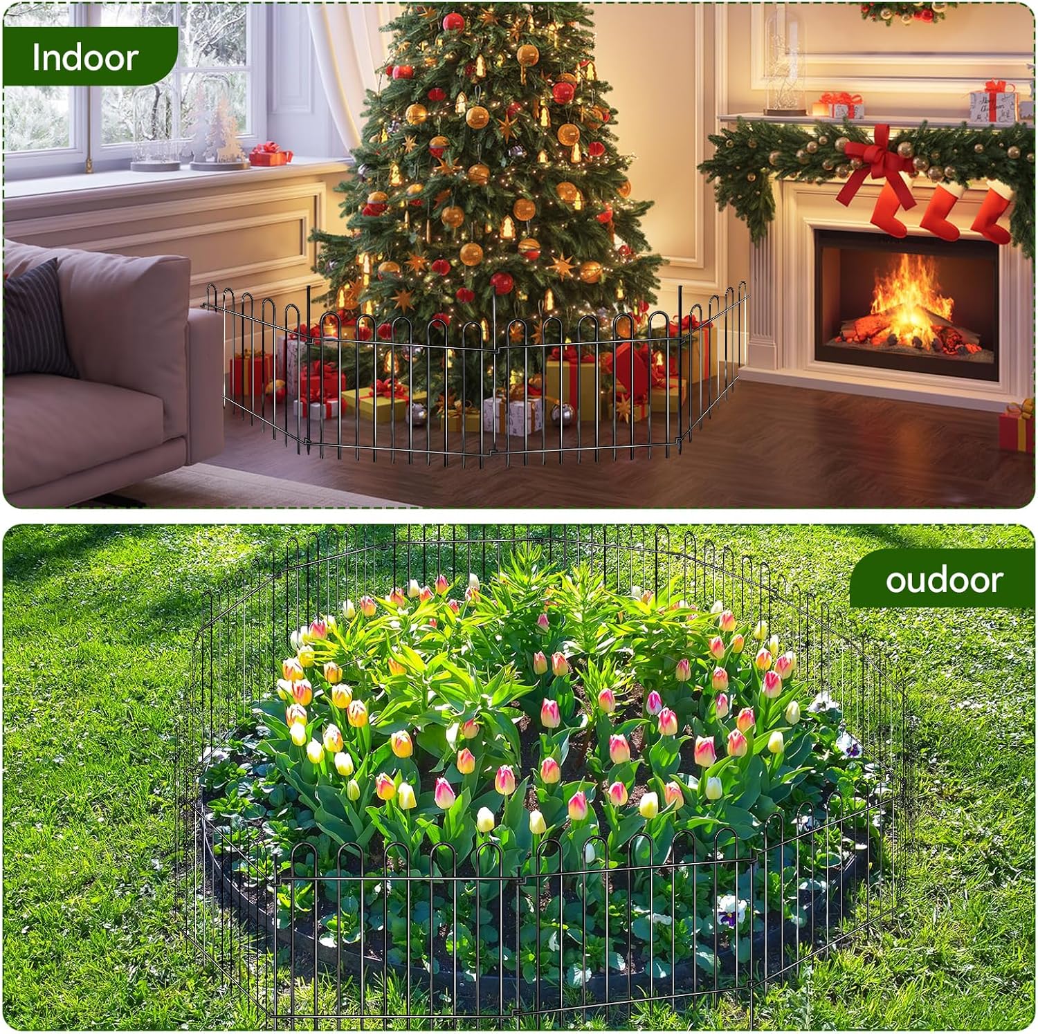 - Multipurpose Fence: This fencing for yard can be used as a small garden fence or animal barrier fence by inserting metal stakes into the ground to prevent small animals from escaping or entering and destroying your garden. The classic arched fence shape and simple modern garden decoration style are very suitable for plant flower beds, vegetable gardens, substations, ponds, lawns, adding a sense of fashion while avoiding accidents.