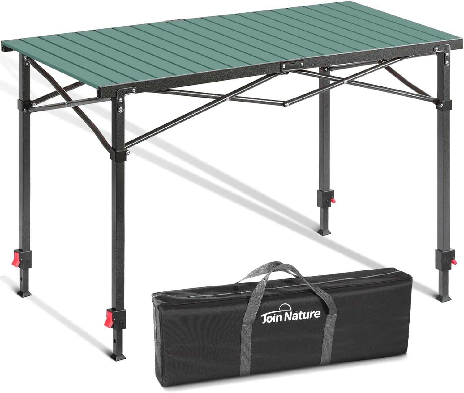 - Extremely Durable: The Join Nature adjustable camp table features a frame made of high-strength painted steel tubes combined with cross-shaped support tubes, and the tabletop is constructed from heavy-duty aluminum sheets. The high-quality materials and construction make our camping table exceptionally strong and durable, with a load-bearing capacity of up to 220 poundsโat least 30% higher than standard tables.