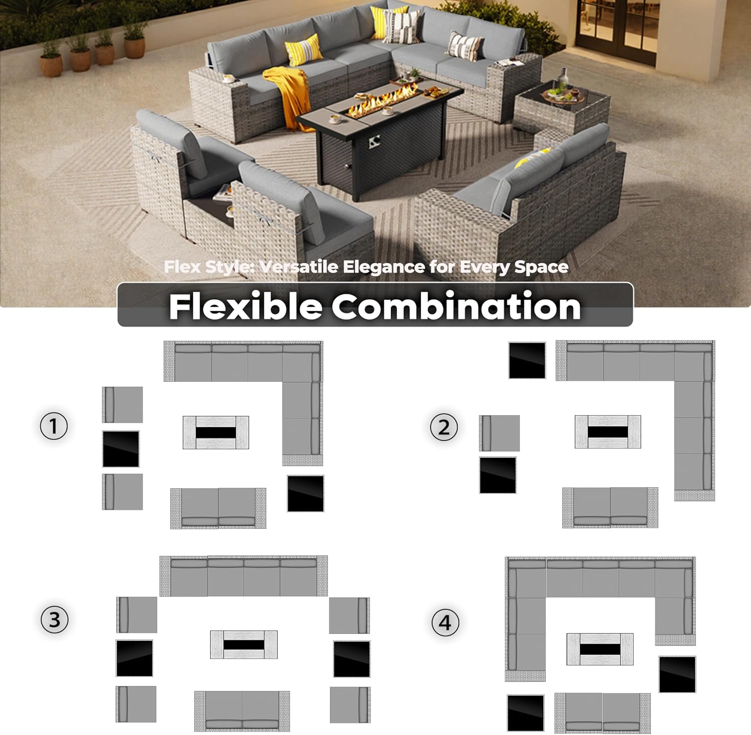 - Modular Combination: Outdoor sectional sofa set can be separated into 10 single seats, which can be freely combined with the included connecting clips to create the outdoor seating arrangement you want to fit into a variety of spaces