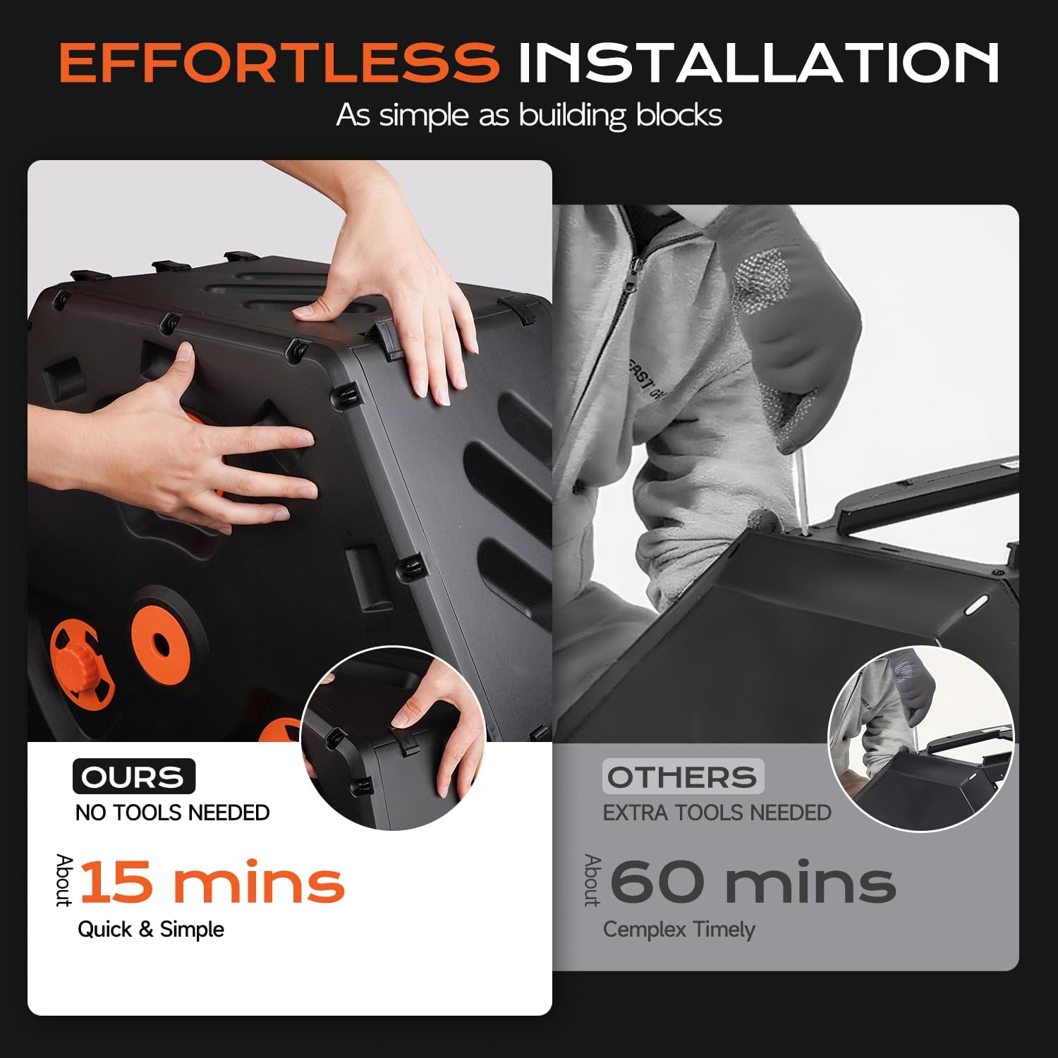 - 【Super Fast Assemble】Unlike traditional outdoor compost bins, TOP XIAN 2025 new upgraded compost bin assemble in minutes. Simply snap components together, no frustrating screws or wrenches. 【We provide step-by-step installation videos for your reference; if you encounter any issues, please do not hesitate to contact.】 Ideal for composting beginners or anyone who hates complicated assembly