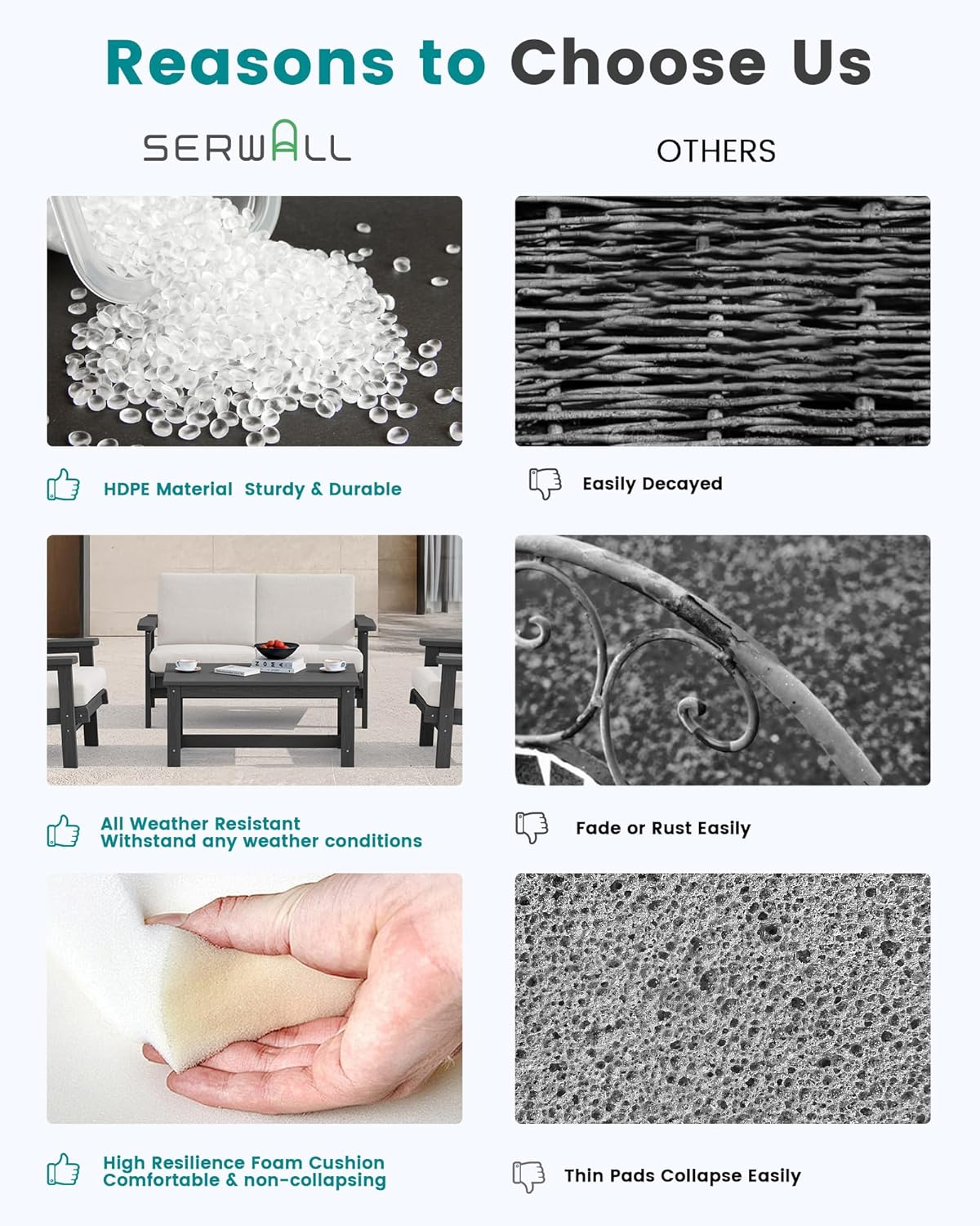 - After-sales Support: We want our customers to be 100% satisfied with serwall outdoor furniture set - you can always come to us for any product questions and product care, we are committed to your satisfaction.