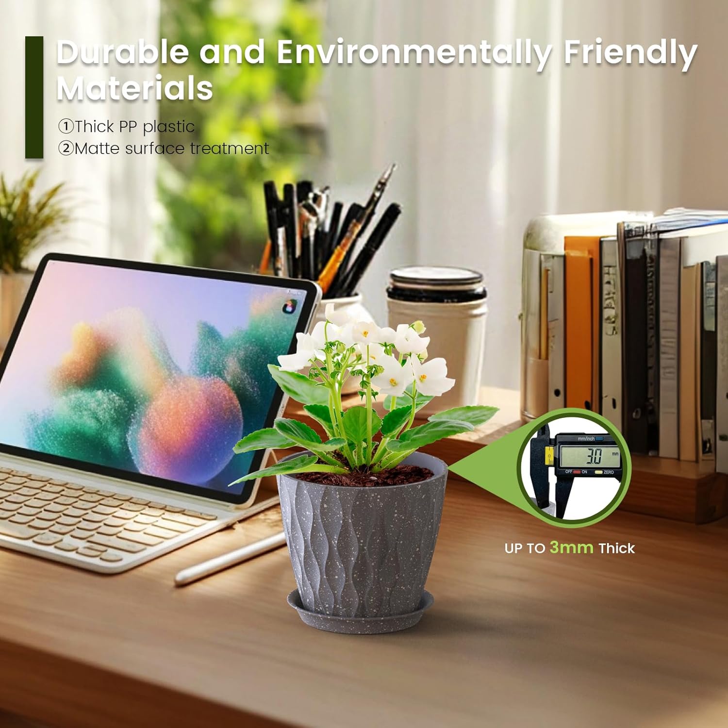 - 【Modern Wave Texture Design】With a simple modern aesthetic and a clean matte finish, this set of 6 small plant pots features a 3D wave-like texture, adding a touch of elegance to any space. Perfect for starting seedlings, or home/office decor, these pots for plants are ideal for gardening