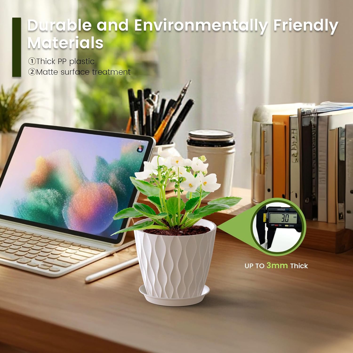 - 【Modern Wave Texture Design】With a simple modern aesthetic and a clean matte finish, this set of 6 small plant pots features a 3D wave-like texture, adding a touch of elegance to any space. Perfect for starting seedlings, or home/office decor, these pots for plants are ideal for gardening
