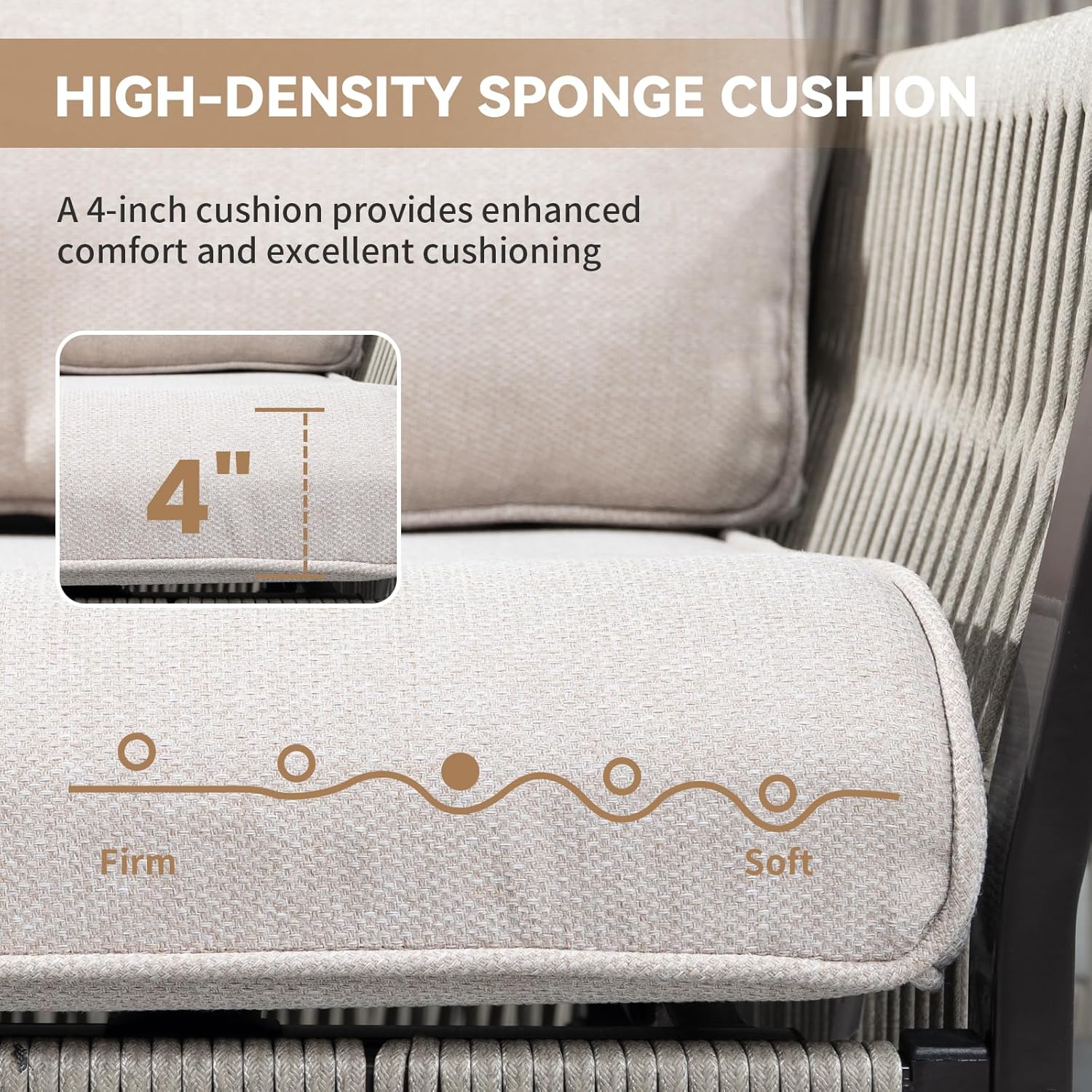 - Durable and Easy-to-Maintain Fabric: The cushions are crafted from Olefin fabric, offering 800 hours of UV protection and water resistance, making this outdoor couch ideal for all-weather use. The covers are removable and washable, featuring hidden zippers for easy cleaning. Enjoy a low-maintenance patio set that stays fresh and inviting throughout the seasons